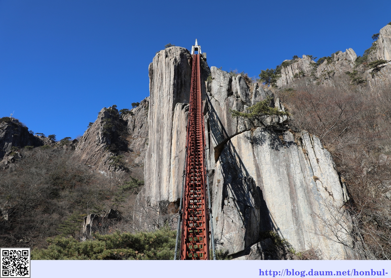 이 삼선계단은 삼선봉까지 36m 높이로 51도의 경사도를 올라가야 하는 아찔한 곳이다.