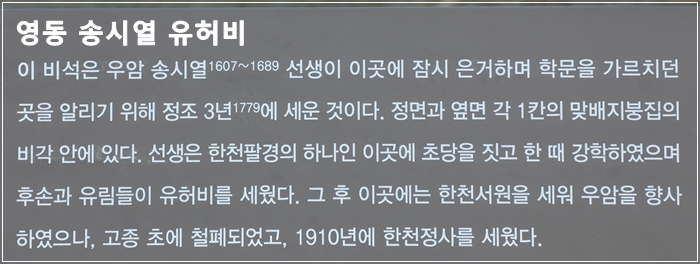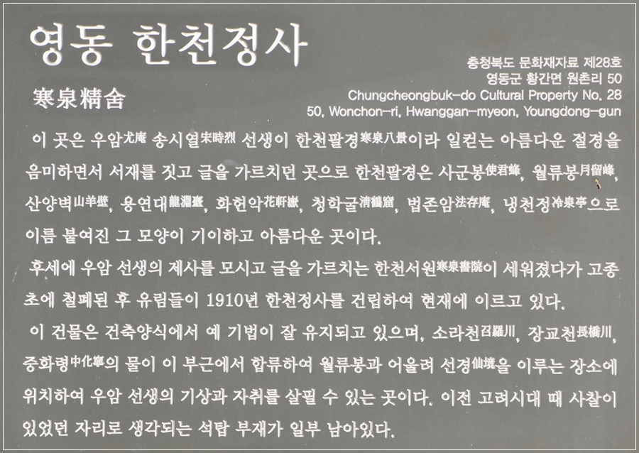 한천팔경은 충북 영동군 황간면에 있는 월류봉의 여덟 경승지를 일컫는데,