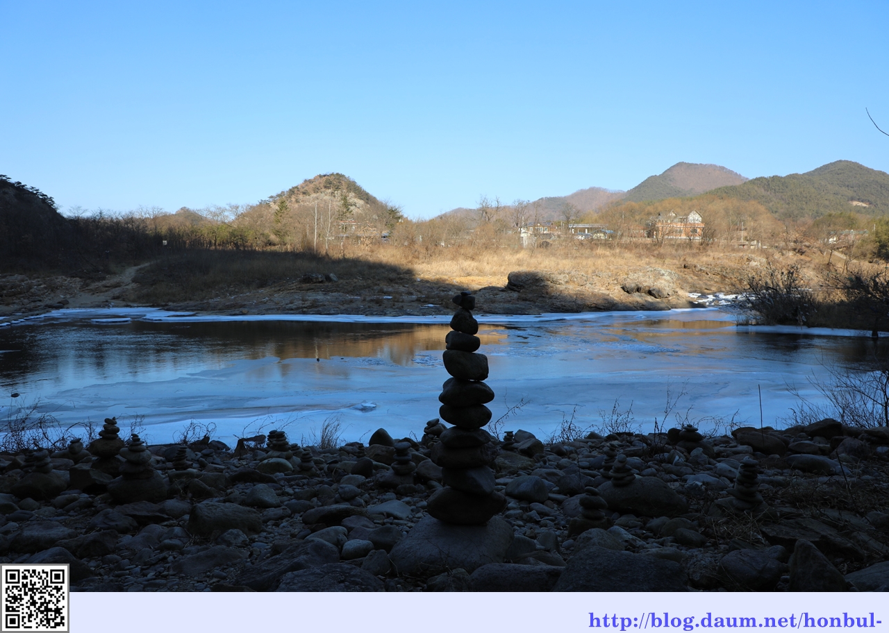 최근 강추위가 몰려와 초강천은 얼음이 두껍게 얼어 건너편까지 걸어가도 되겠단 생각이 든다.