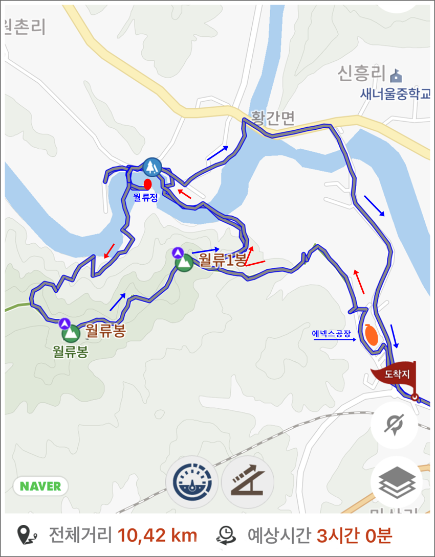 월류정 전망대에서 영동역으로 가는 가장 빠른 에넥스 정류장까지는 2.2km이므로 걸을만한 거리다.