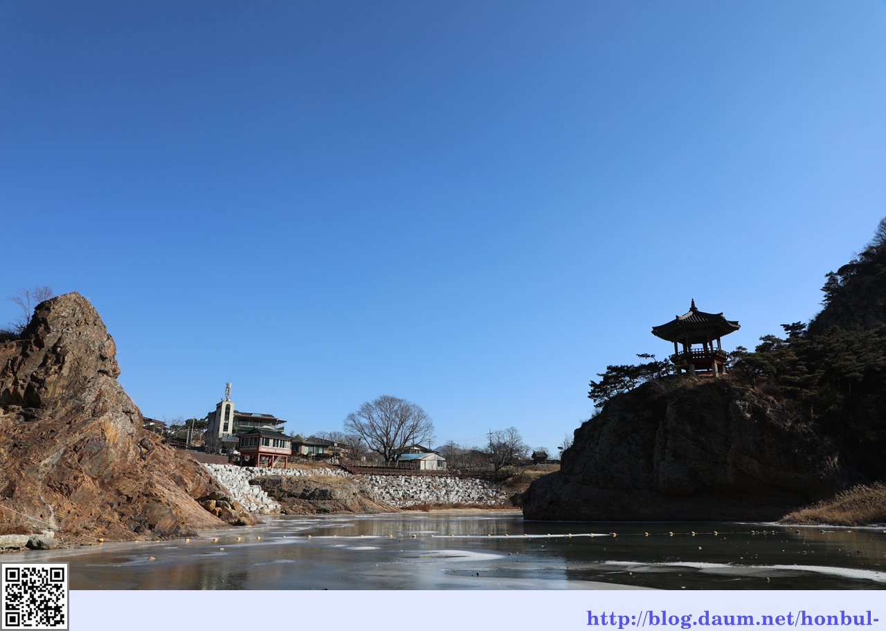 월류봉은 덤이고 화헌악에 아름다운 자태로 들어선 월류정이 초강천과 어울리는 풍경이 그림 같다.