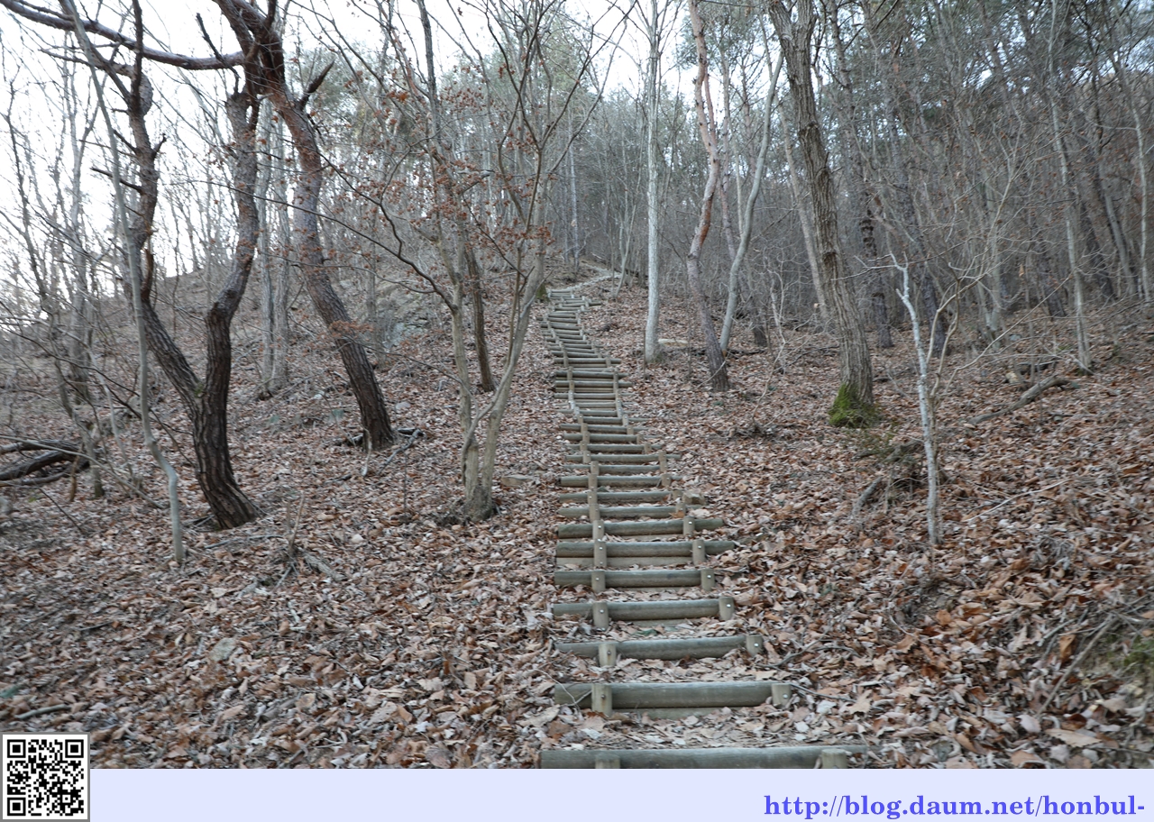 낙엽이 미끄럽고 가파른 길이라 낙엽 속으로 발을 딛고 미끄러지지 않게 발을 앞뒤로 움직이며 흙을 디뎠다.