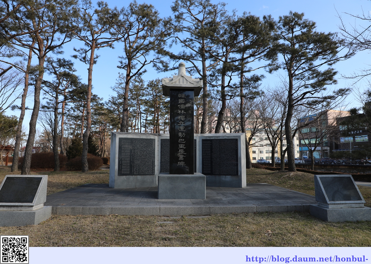 홍주의사총으로 가는 길에 만나는 대교공원에는 한국유림 운동 파리장서 비 등이 설치되어 관심을 끈다.
