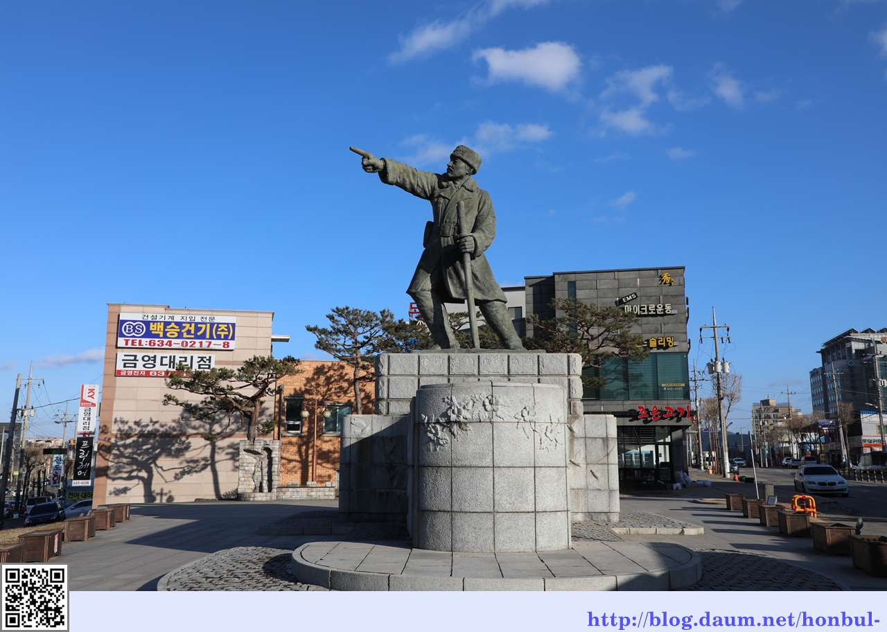 홍성운 탐방을 끝내고 홍성역으로 가는 길에 만난 백야 김좌진 장군 동상이다.