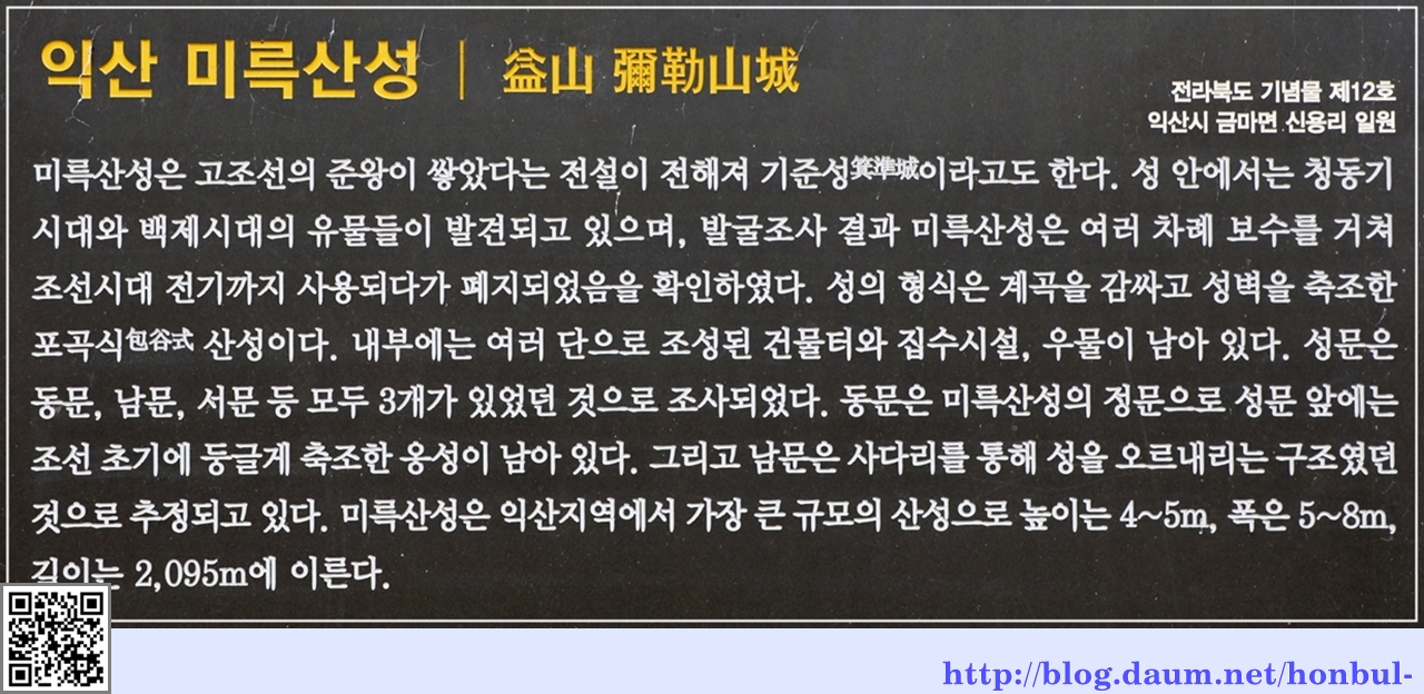 미륵산성은 익산지역에서 가장 큰 규모의 산성으로 높이는 4~5m, 폭은 5~8m,