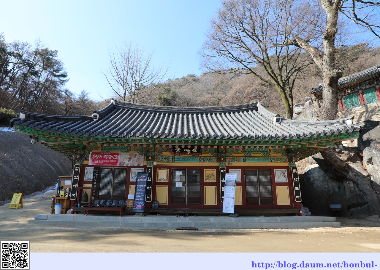 보통 사찰에선 일주문 등에 사찰 이름을 거는 데 비해 작은 사찰이라 이런 지혜를 발휘했다.