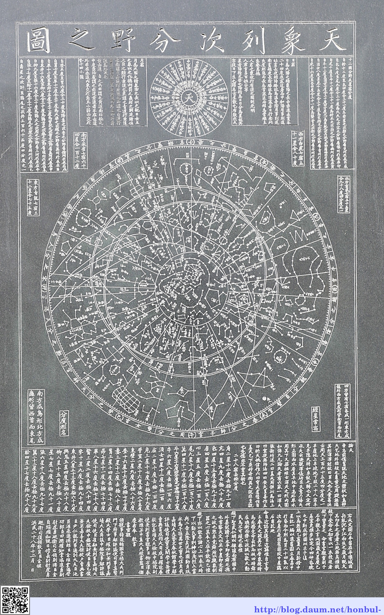이것은 국립 고궁박물관에 전시되어 있는 「천상열차분야지도 각석」을 본떠 1999년 5월에 만들었다. (안내문)