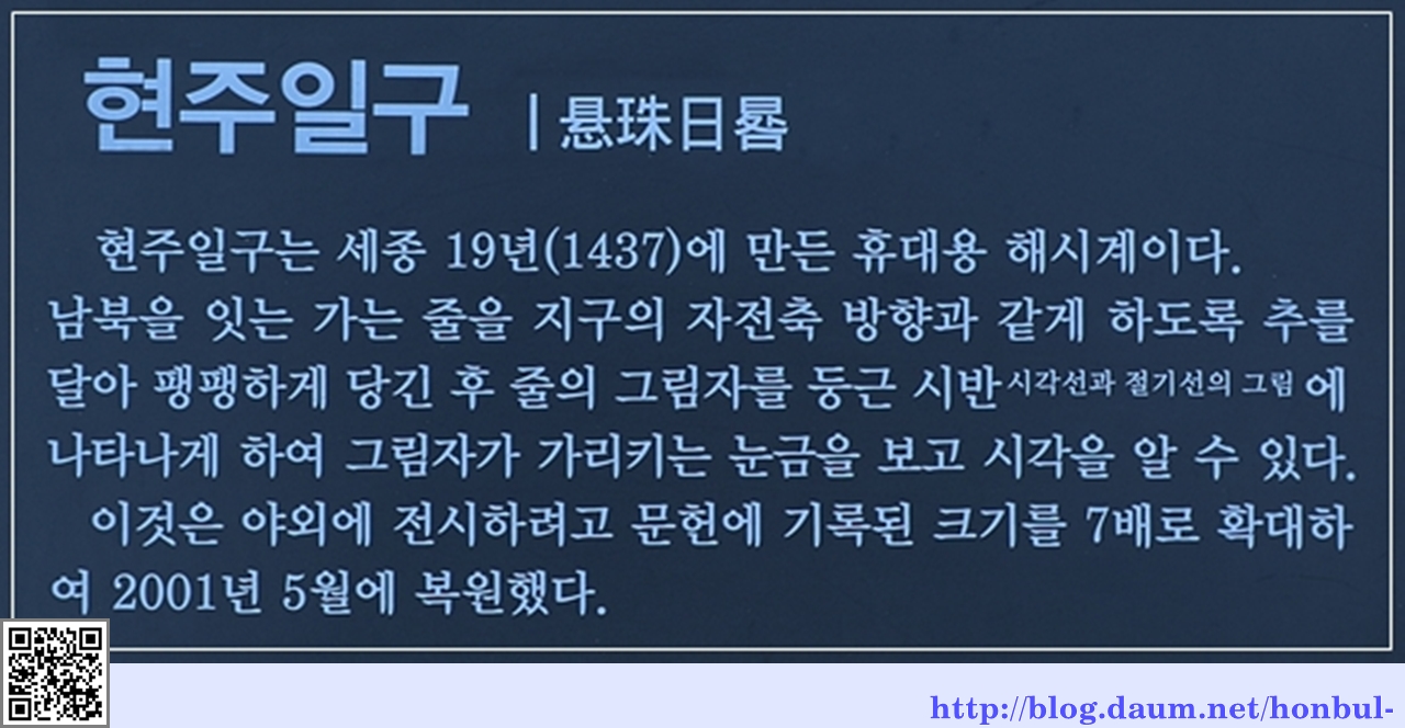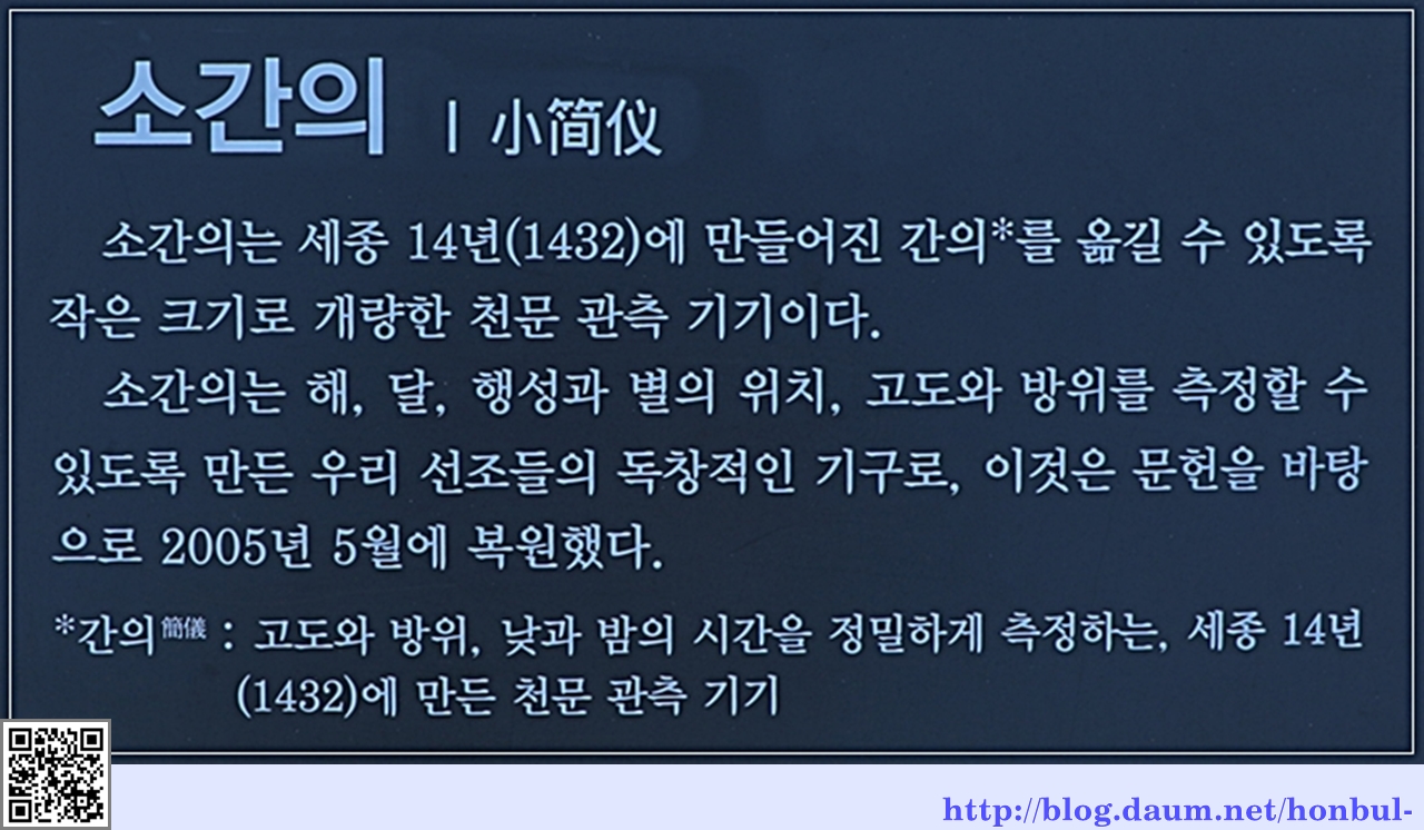 혼천 부분을 2.5배 정도 확대하여 1999년 12월에 복원했다. (안내문)