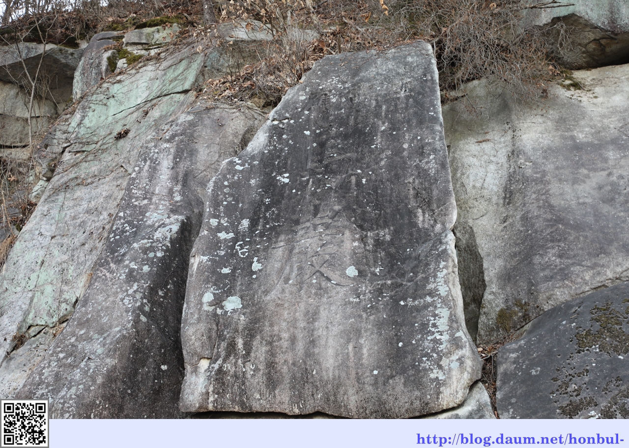 가운데 바위에 마암이란 한자가 새겨져 있으나 巖 자만 일부 보이고 더 이상의 글자는 보이지 않는다.