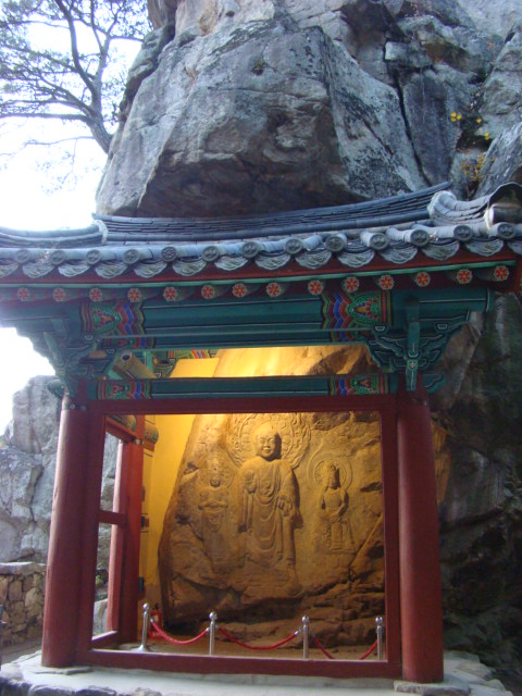 충청남도 서산시 운산면 가야산 계곡을 따라 들어가면 층암절벽에 거대한 여래입상을 중심으로