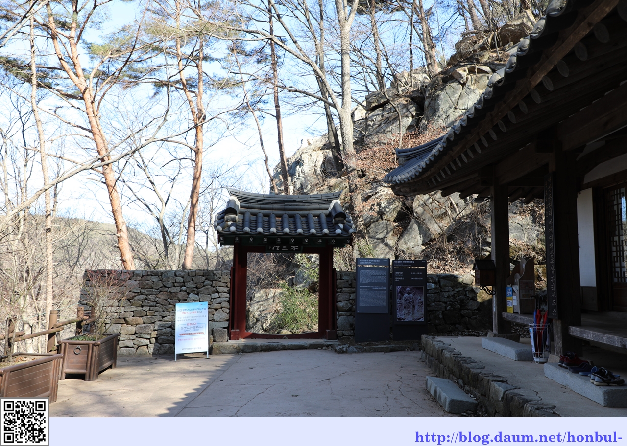 관리사무실에서 마애여래삼존상으로 가려면 작은 쪽문인 불이문을 나서야 한다.