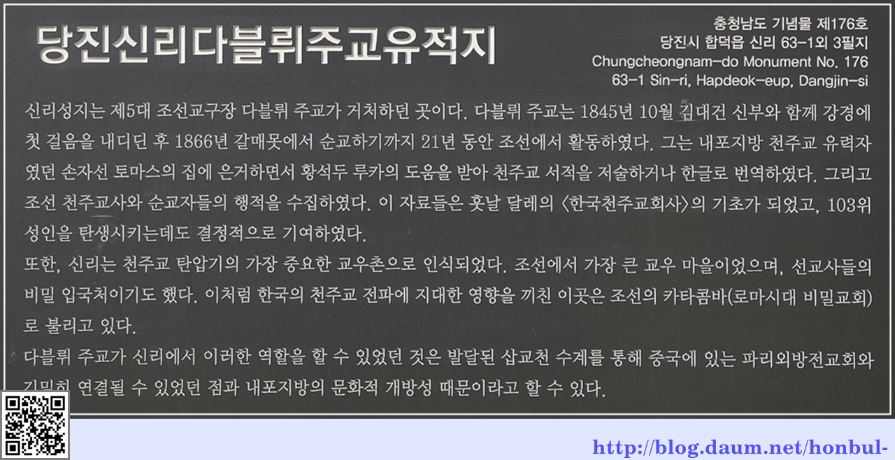 신리성지에 첫발을 디디며 위 안내문을 읽고 다블뤼 주교의 업적을 알 수 있다.