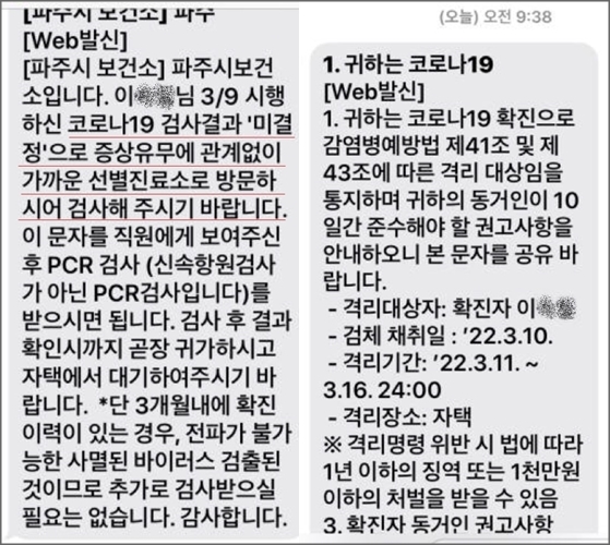 같이 근무한 아내도 찜찜해 먼저 병원에서 진단키트 검사한 결과 양성반응이 나왔다.