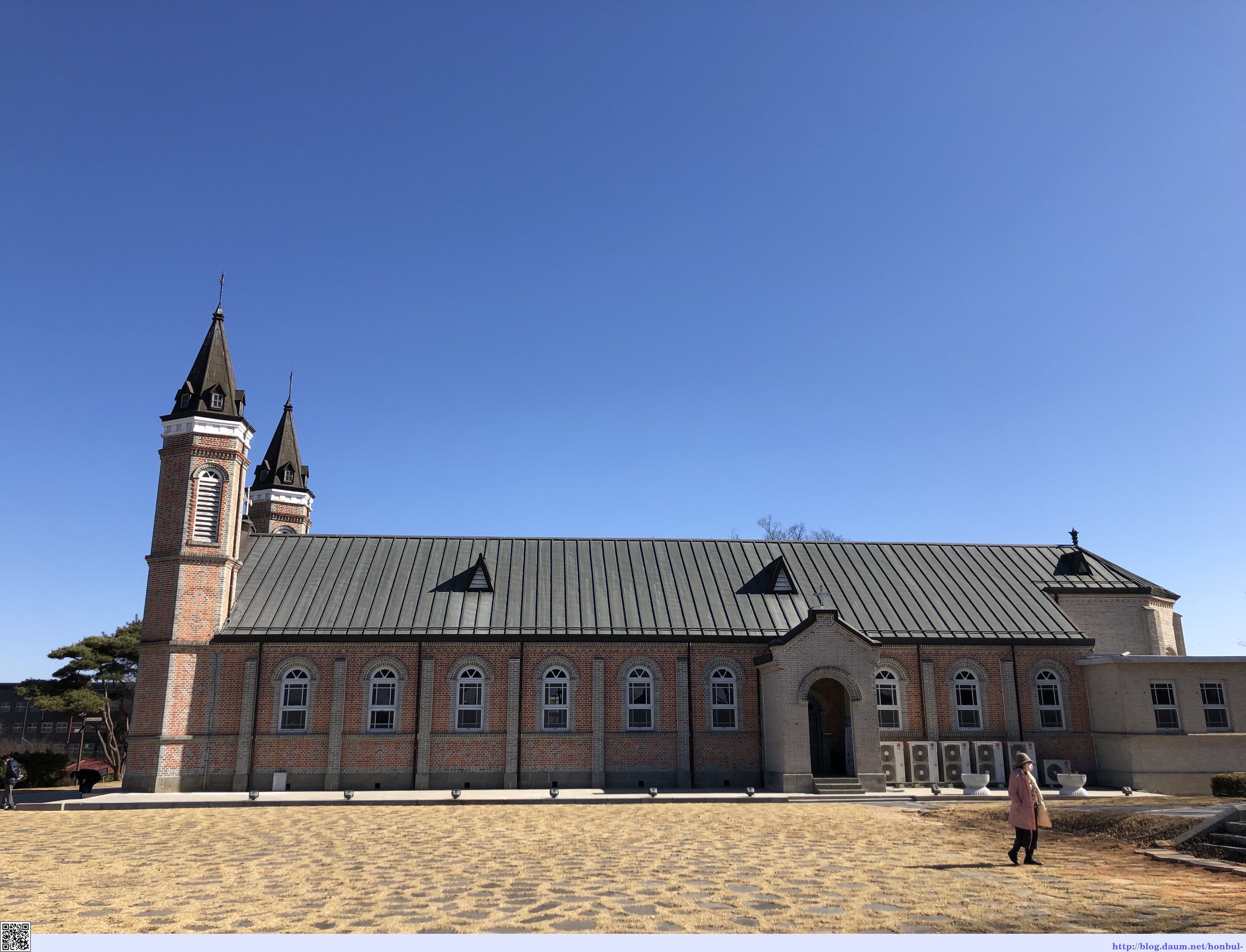 입구에 들어서면 붉은 벽돌로 된 고딕 양식의 천주교 성당이 눈에 띈다.