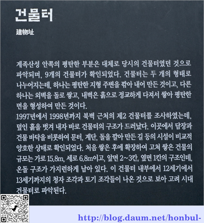 계족산성에서 이 건물터가 제일 높아 조망이 좋아 이곳의 수령이 상주했을 것으로 보인다.
