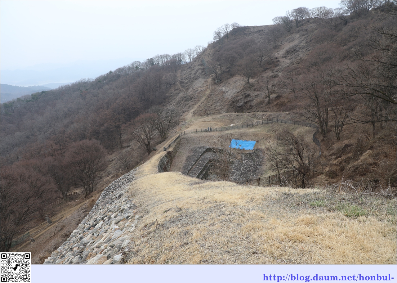 휀스를 친 곳은 건물터가 있던 곳으로 현재 산성 복원 중이라 출입이 금지되었다.