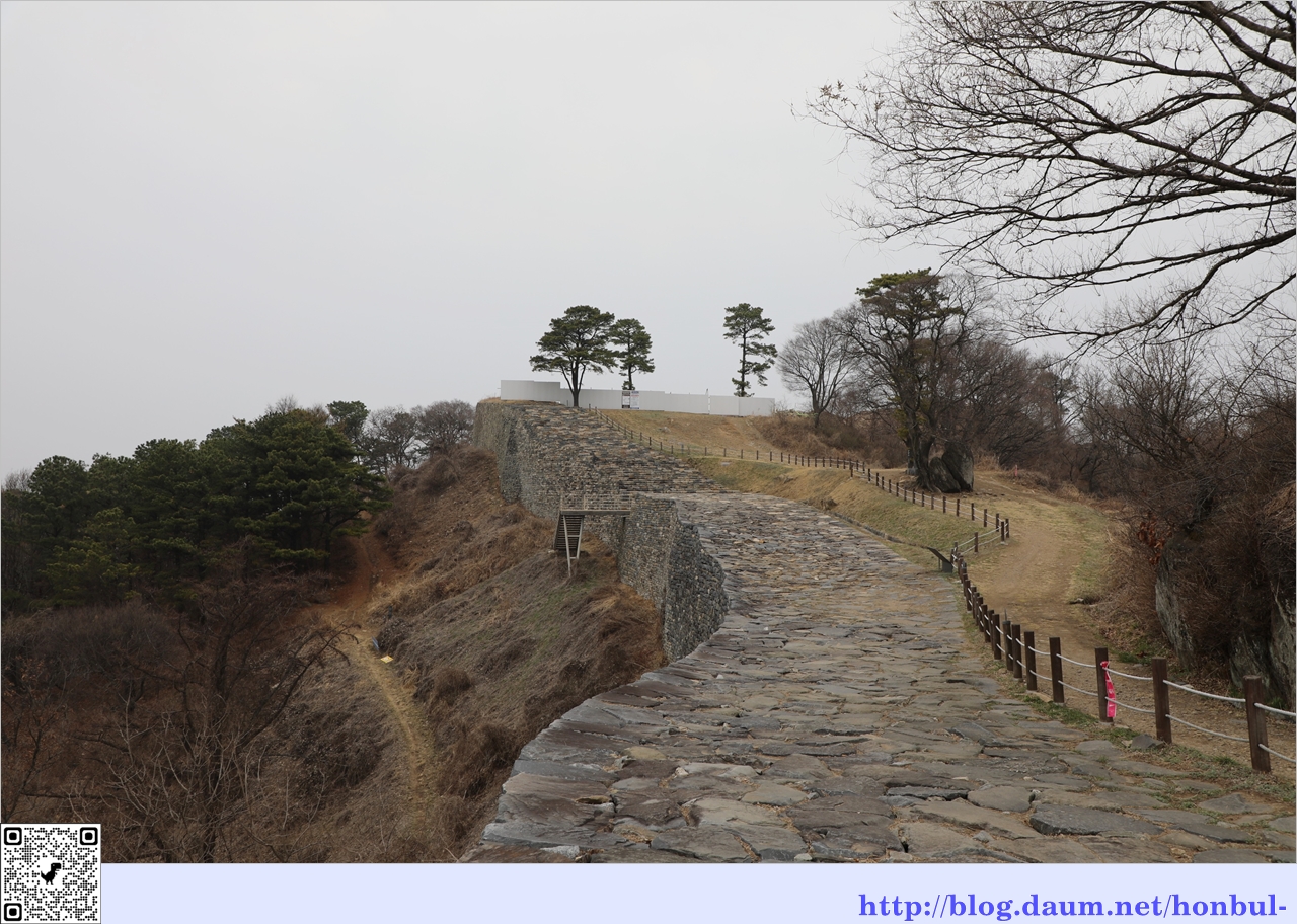휀스를 친 곳은 건물터가 있던 곳으로 현재 산성 복원 중이라 출입이 금지되었다.