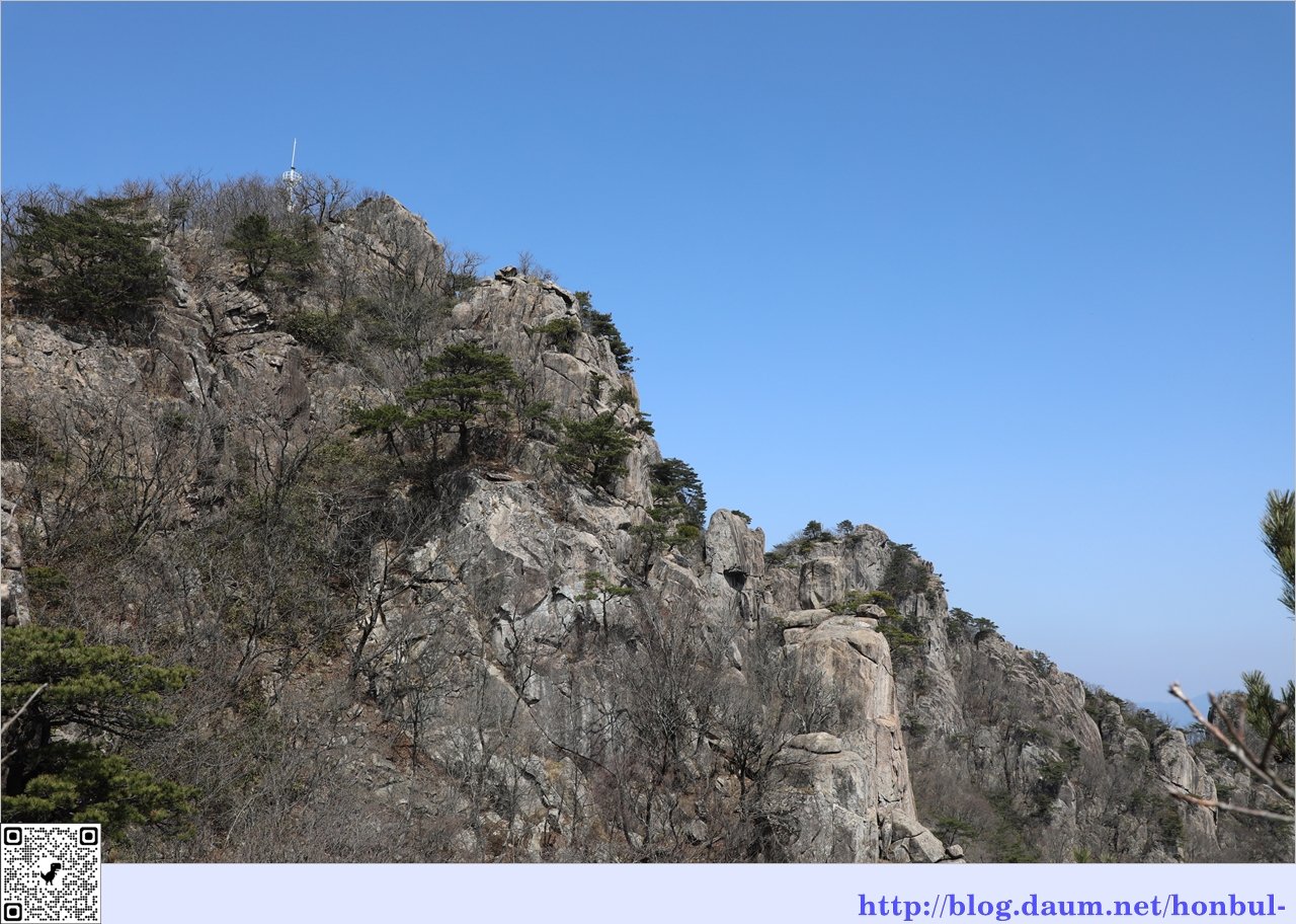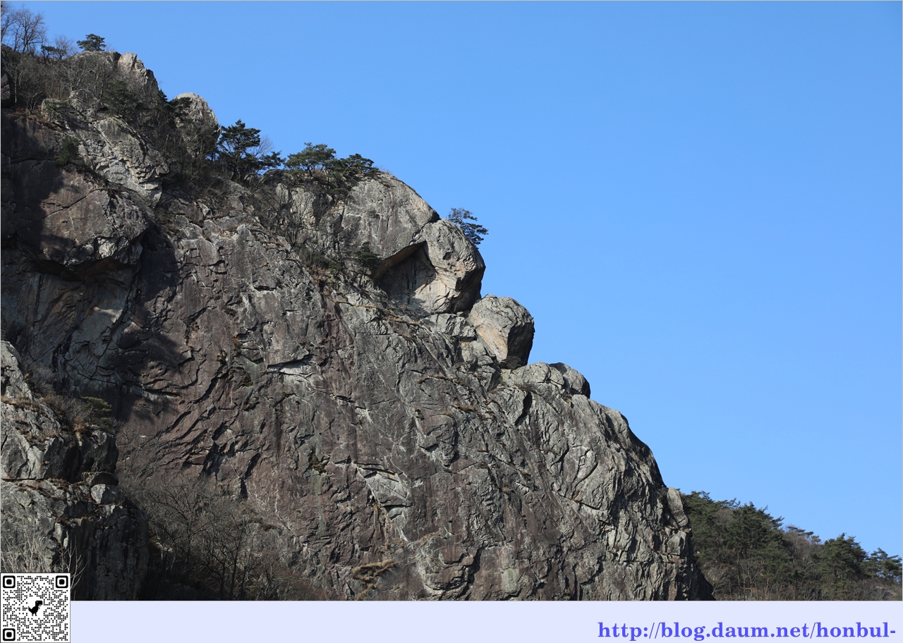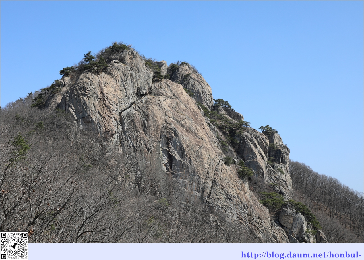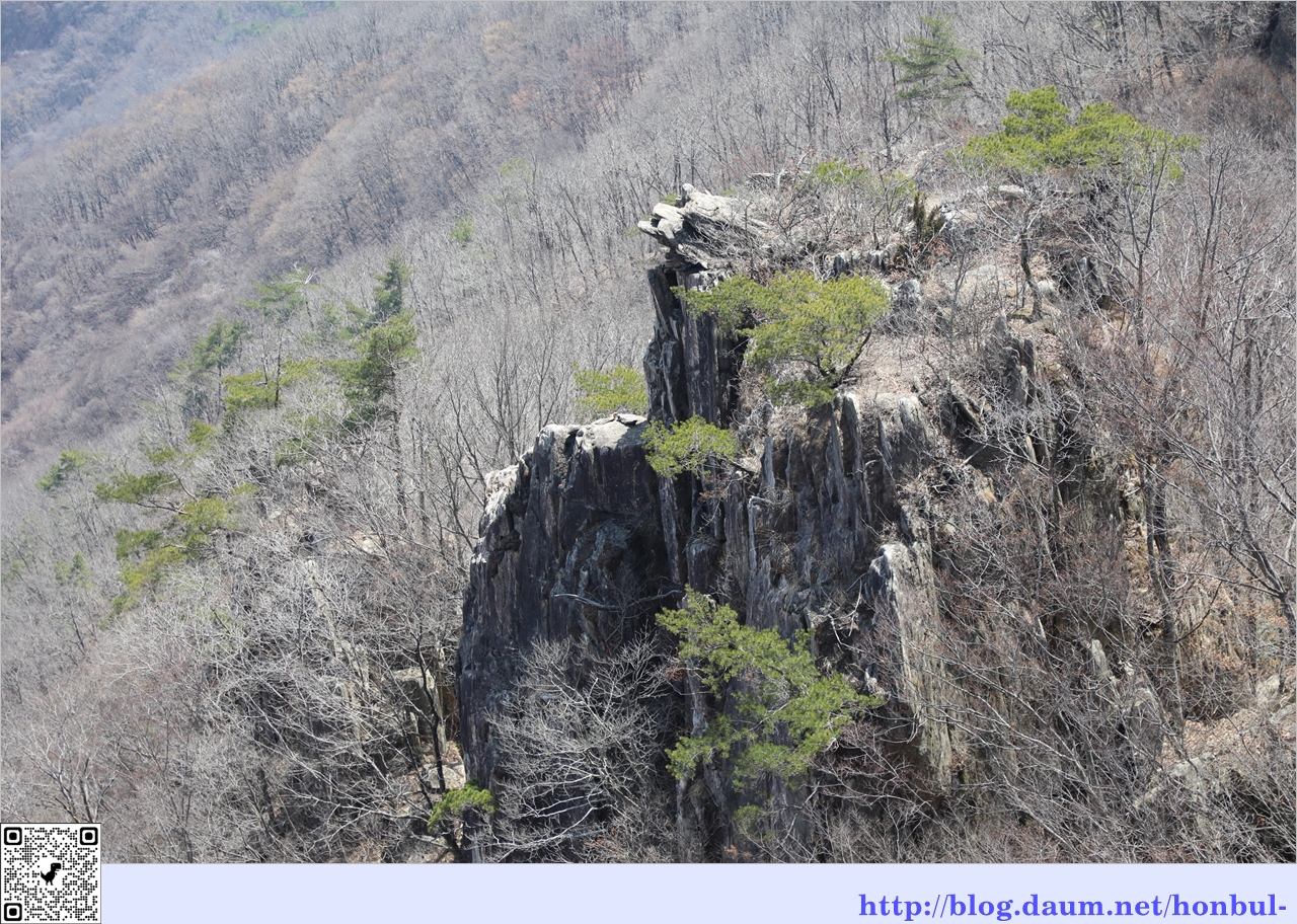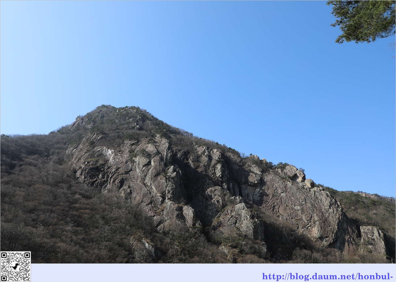 버스에서 내려 개울 건너 천등산 암릉을 보니 제법 거칠게 느껴진다.