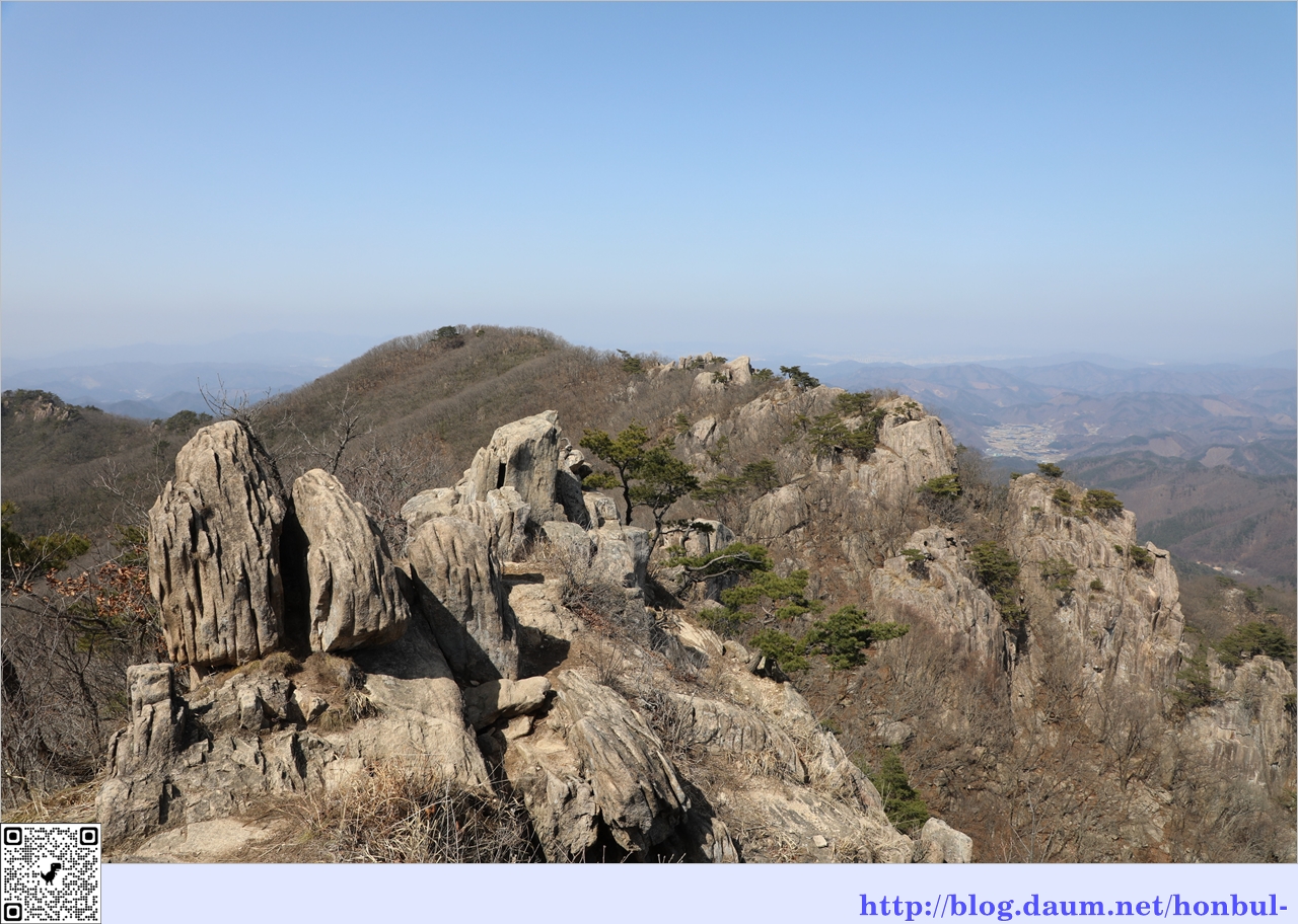 남동쪽으로 펼쳐진 암릉이 멋지나 골골샅샅 누비기엔 위험하고 시간도 없다.