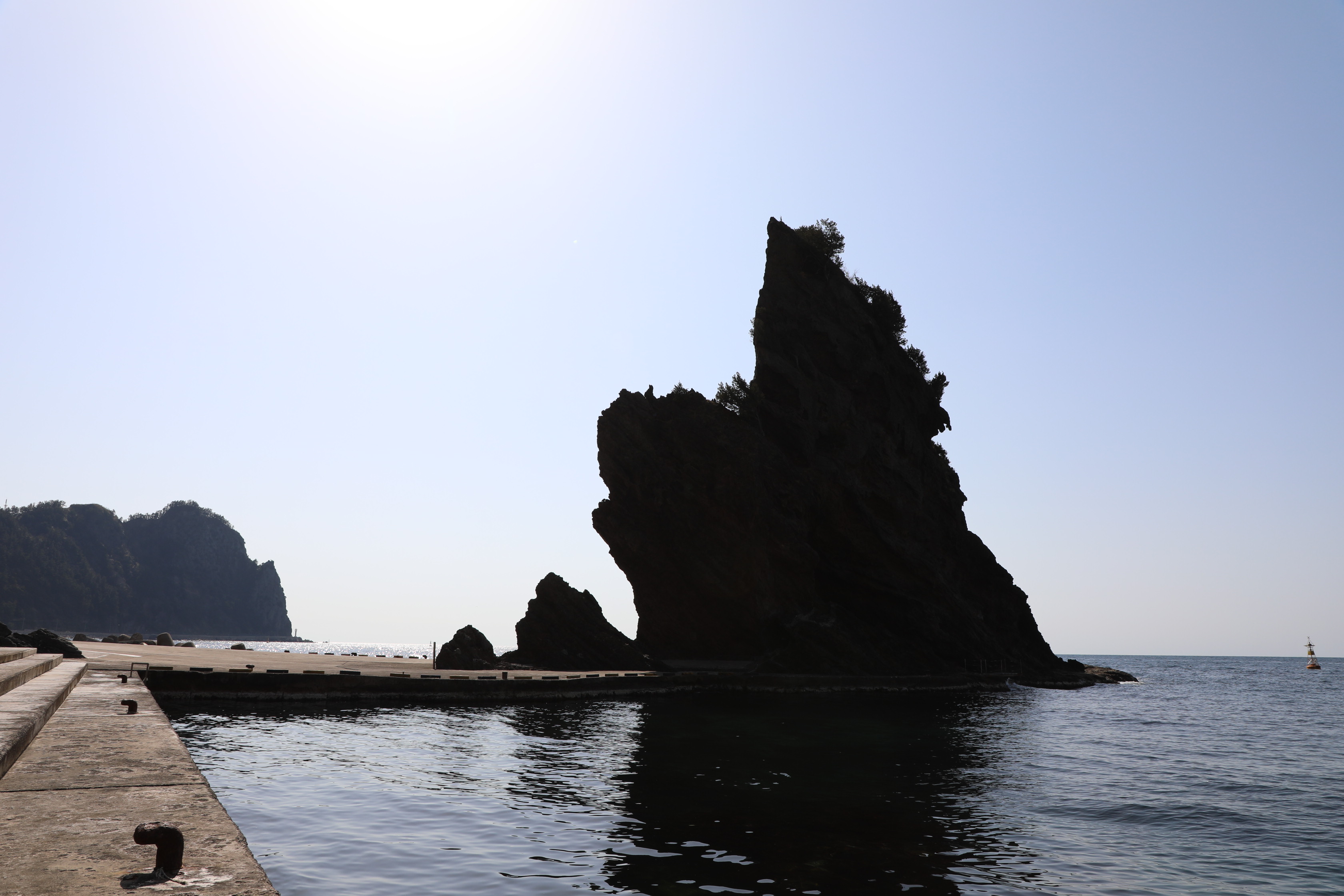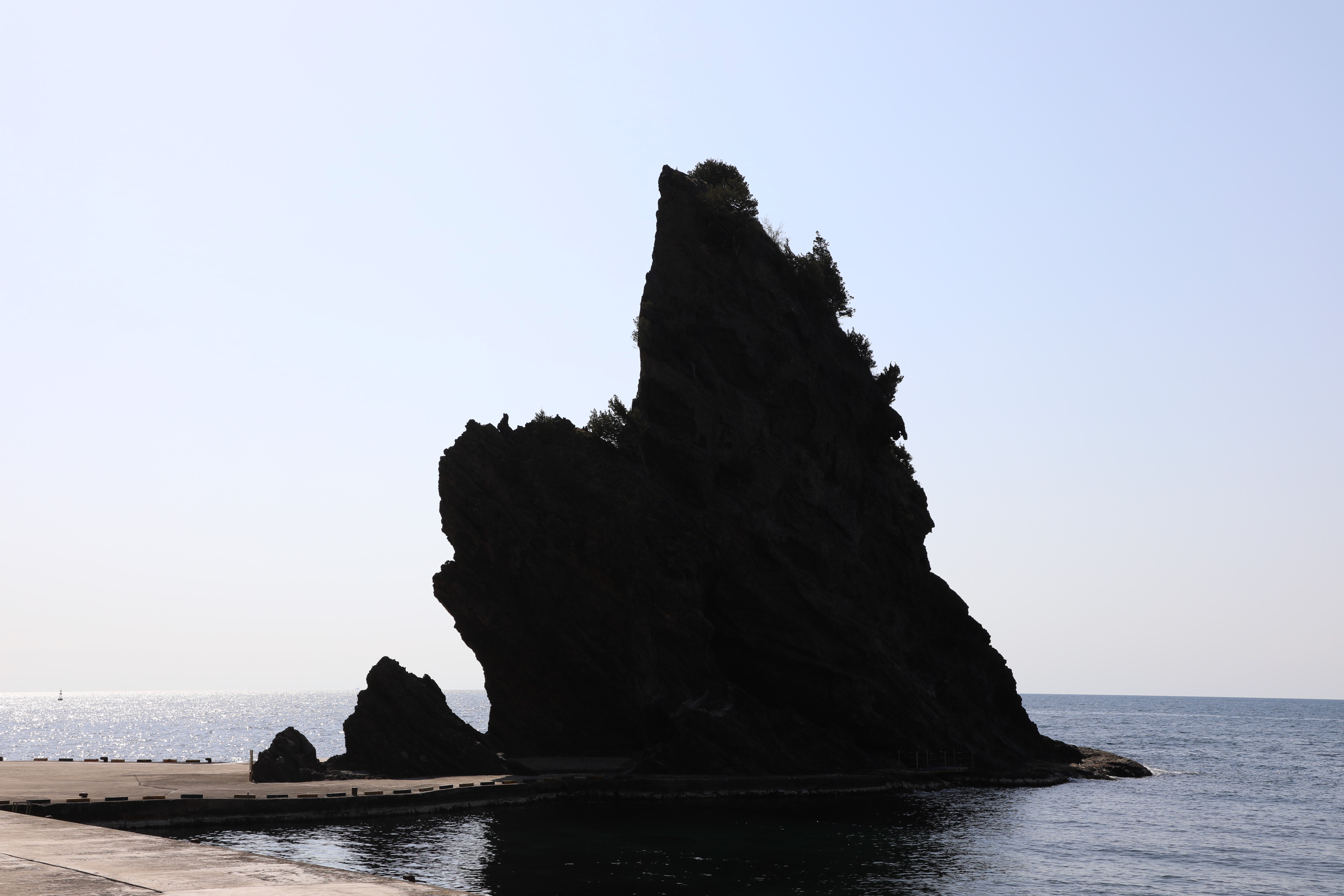 아홉 시에 육지에서 보는 거북바위는 역광일 수밖에 없다.