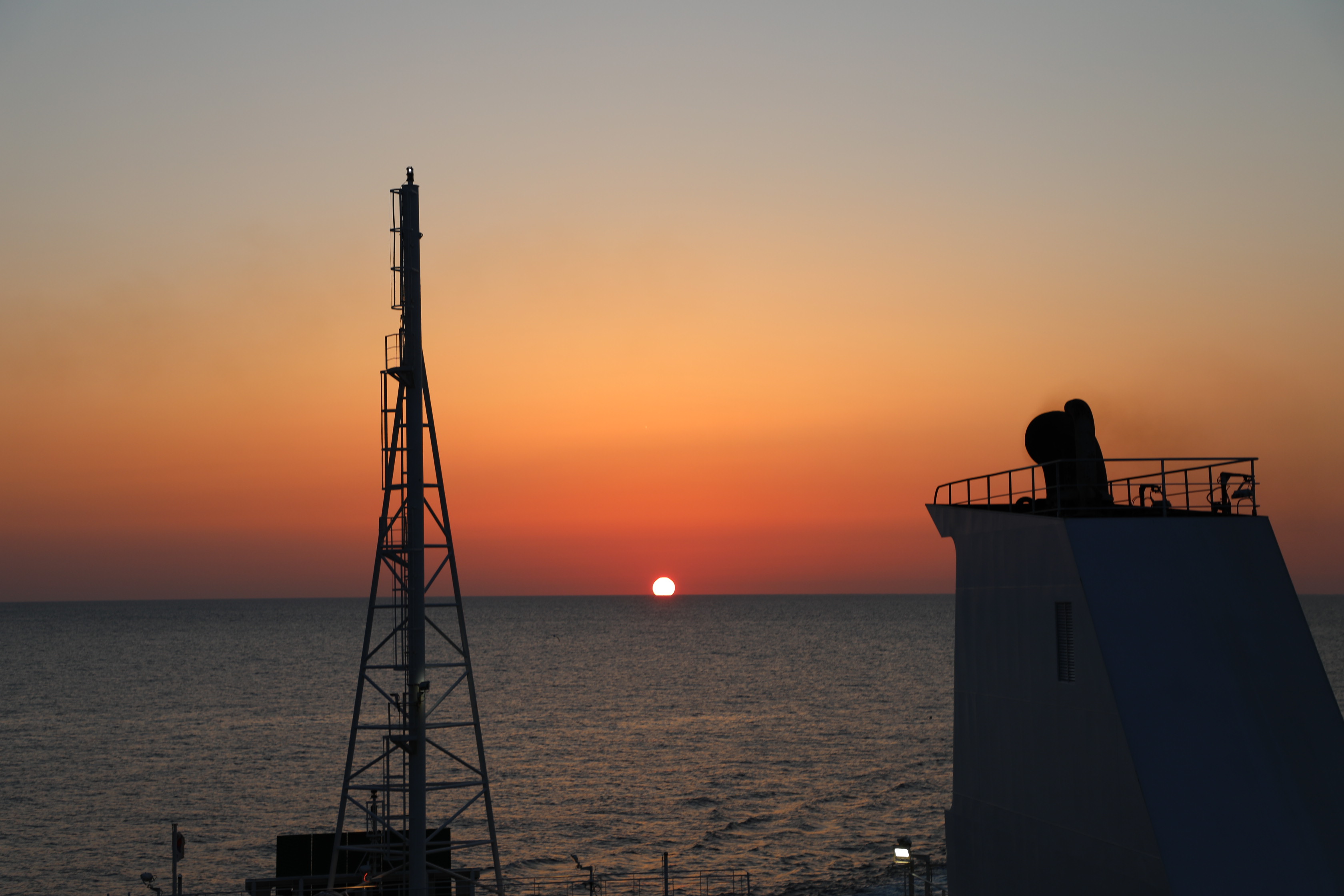 05:30이 되자 "잠시 후에 일출이 시작되니 해맞이 할 사람은 옥상 갑판으로 나오라"고 한다.