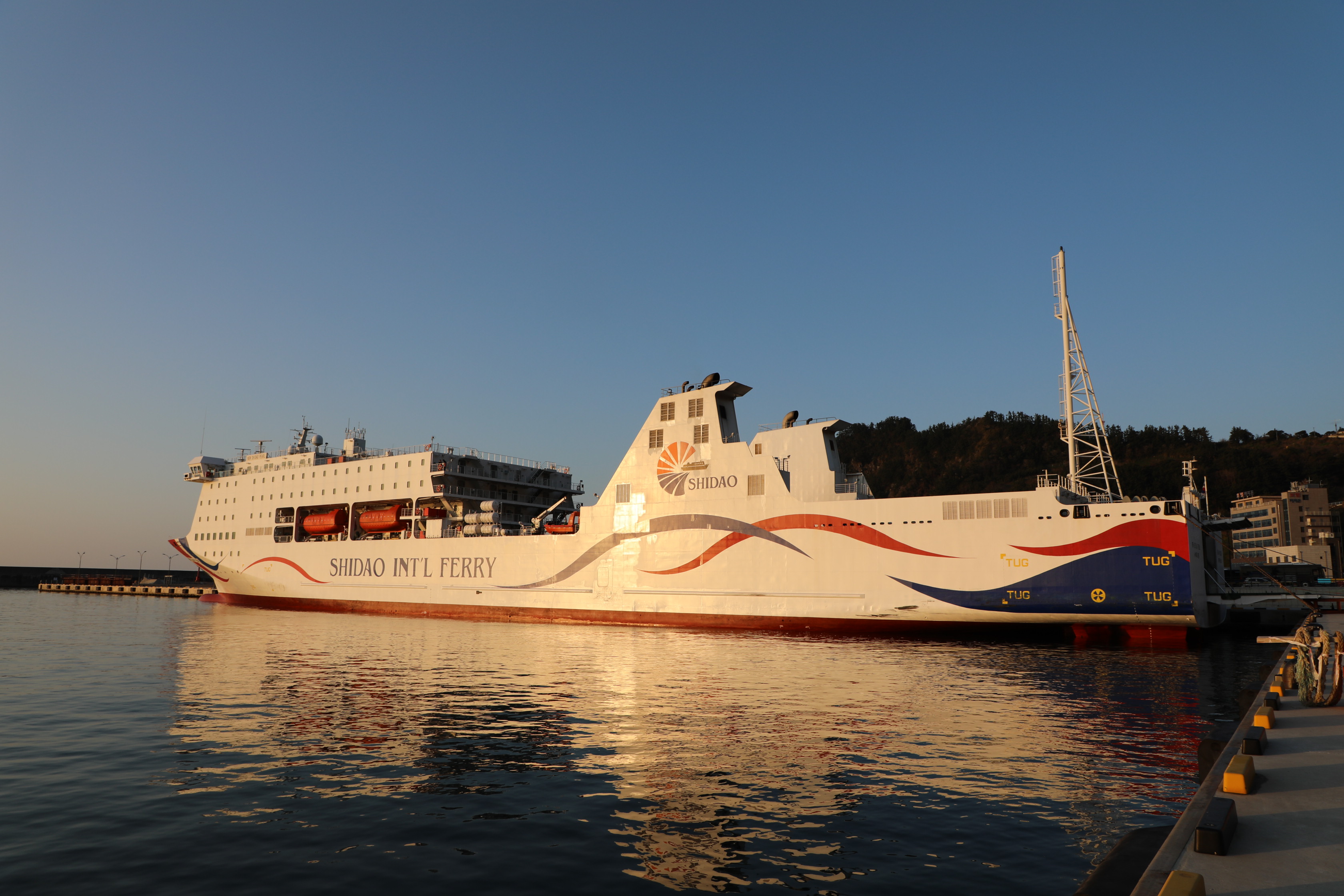 어젯밤엔 흰색이던 씨다오 인터내셔널 페리는 붉은 햇빛을 받아 제법 붉은빛을 띤다.