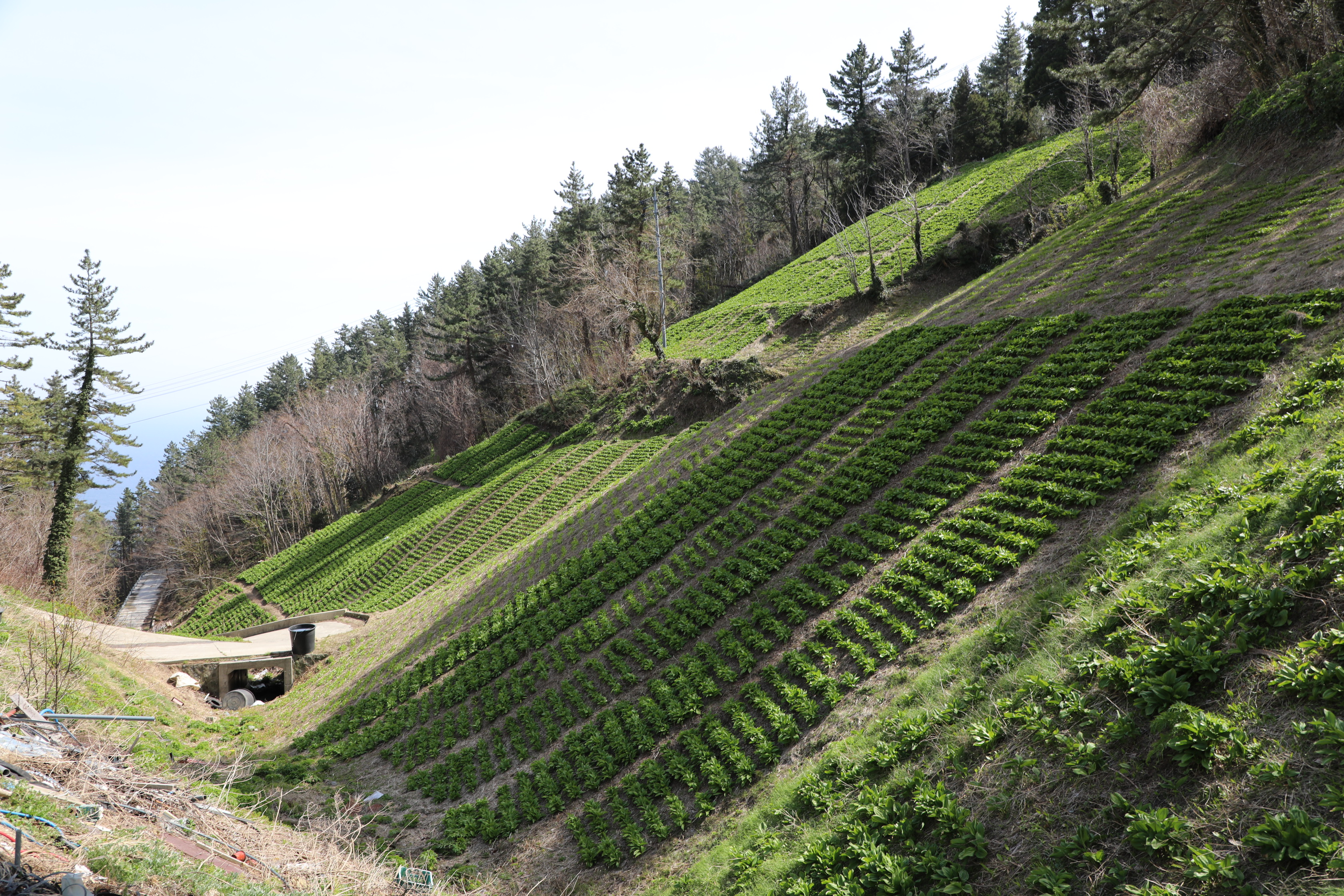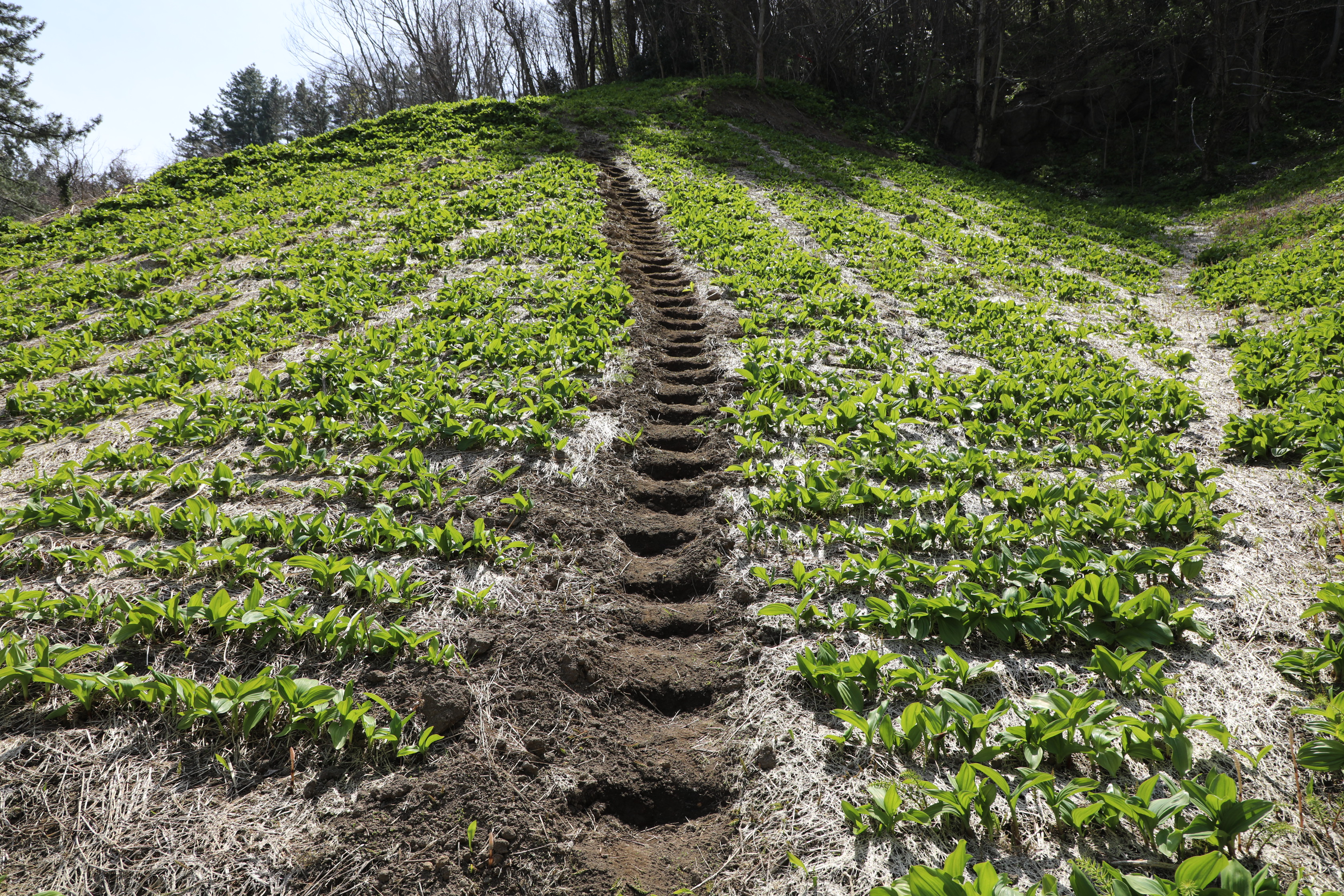 건너편 명이나물 밭엔 괭이로 흙을 다져 흙 계단을 만든 게 특이하다.