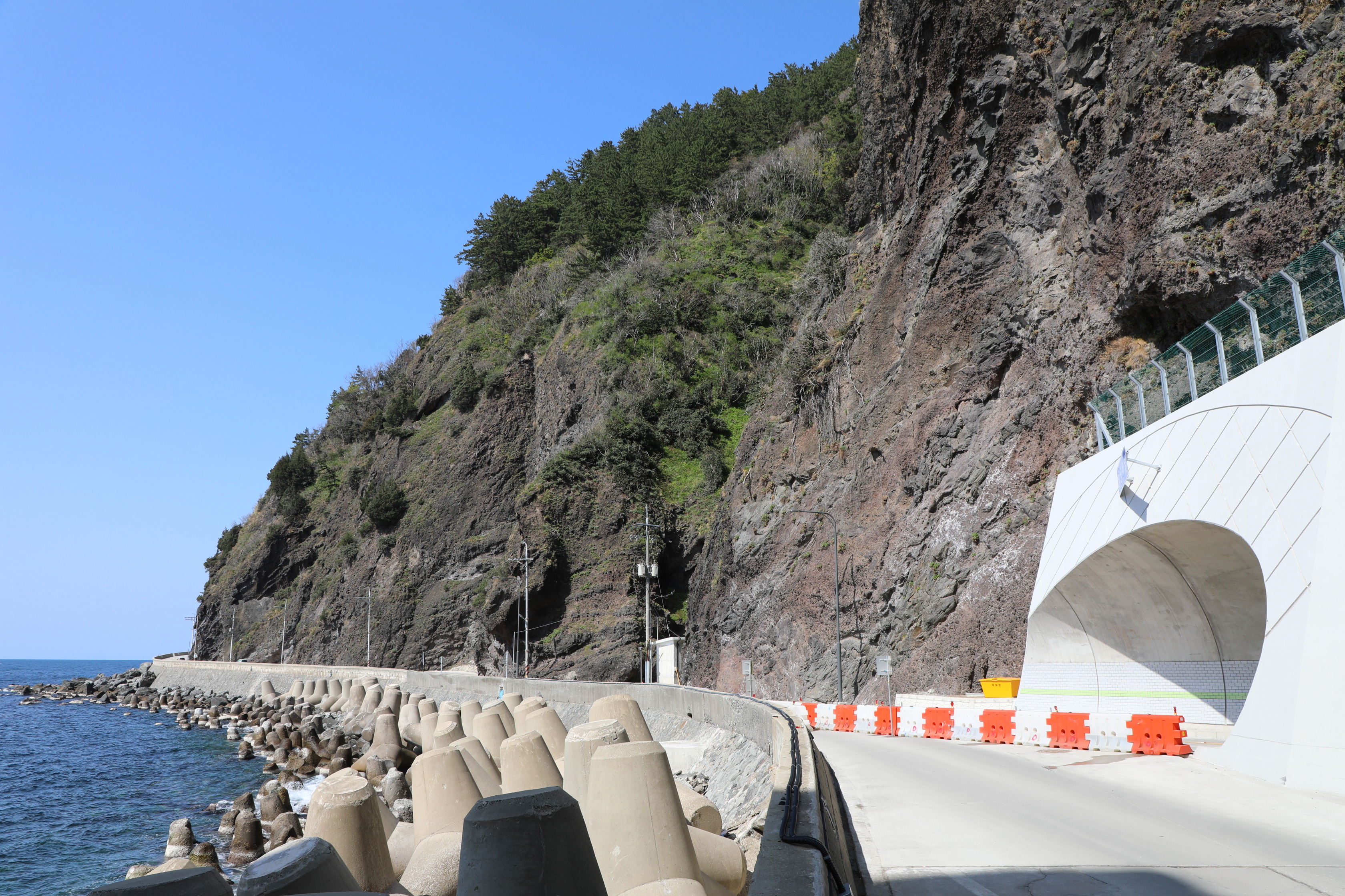 울릉도를 한 바퀴 도는 일주도로가 완공되었다.