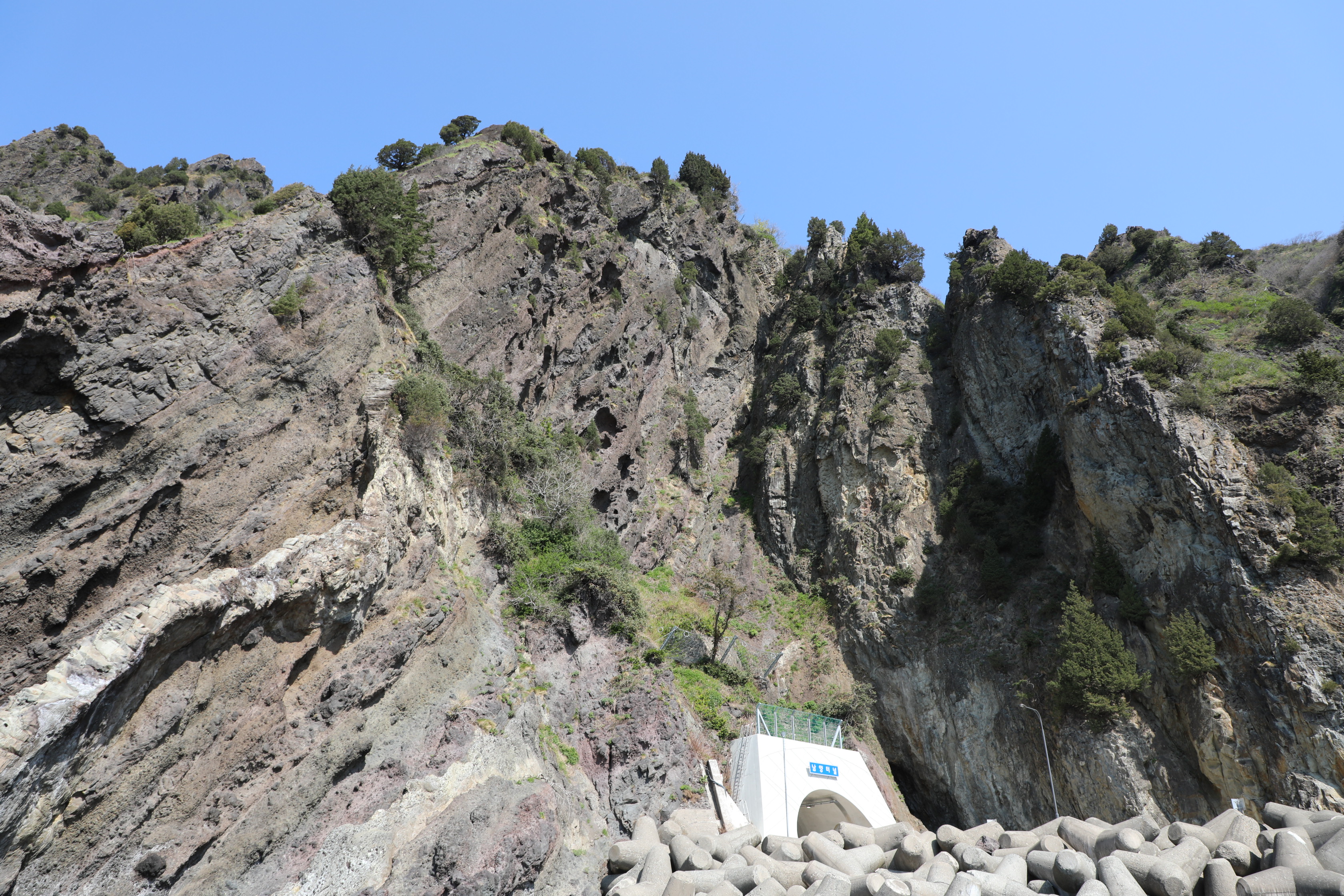 거대한 바위에 제법 큰 굴이 뚫려 건너편으로 넘어갈 수 있으나 발아래는 바닷물이 가득 찼다.