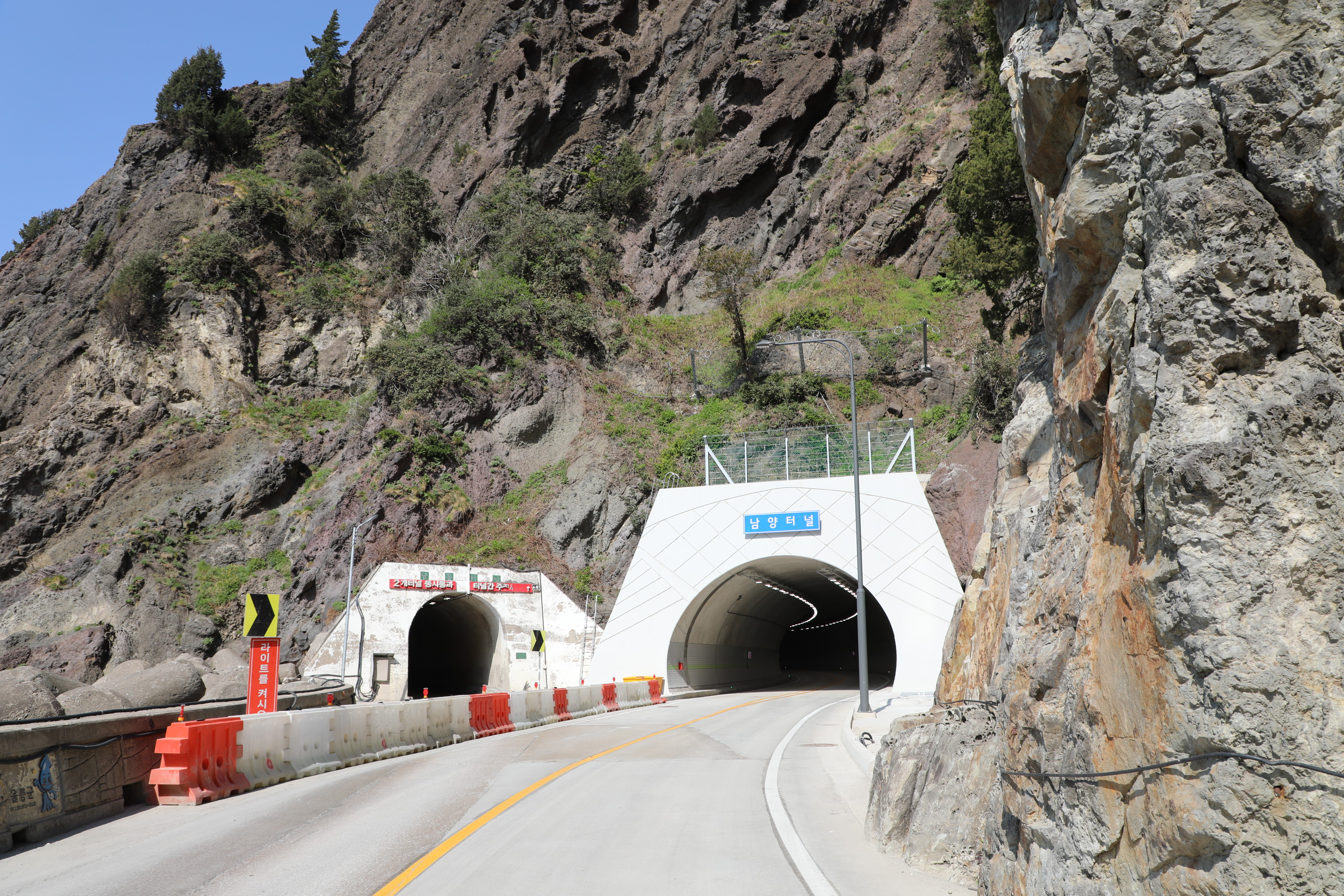 모두 남양 터널인 데 왼쪽 터널은 겨우 한 차선이라 우측에 2차선으로 다시 굴을 뚫었다.