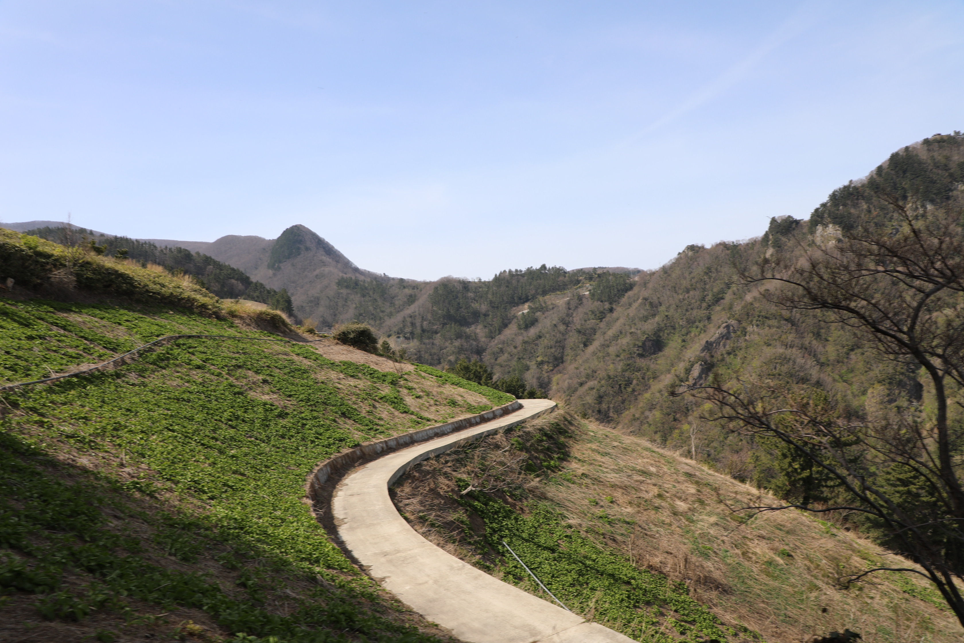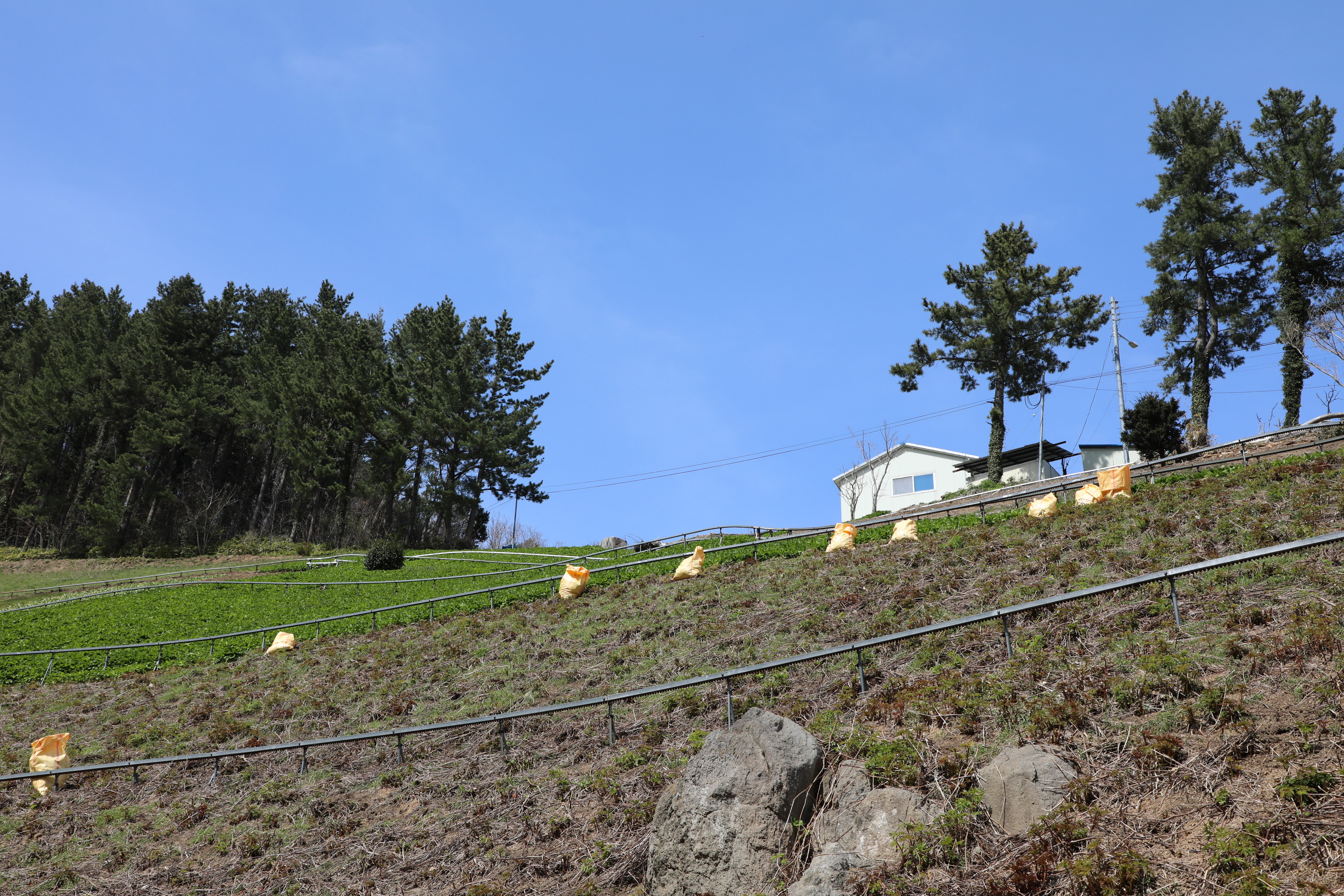 이런 산채 밭 사이로 농로가 뚫렸으나 가드레일은 존재하지 않는다.