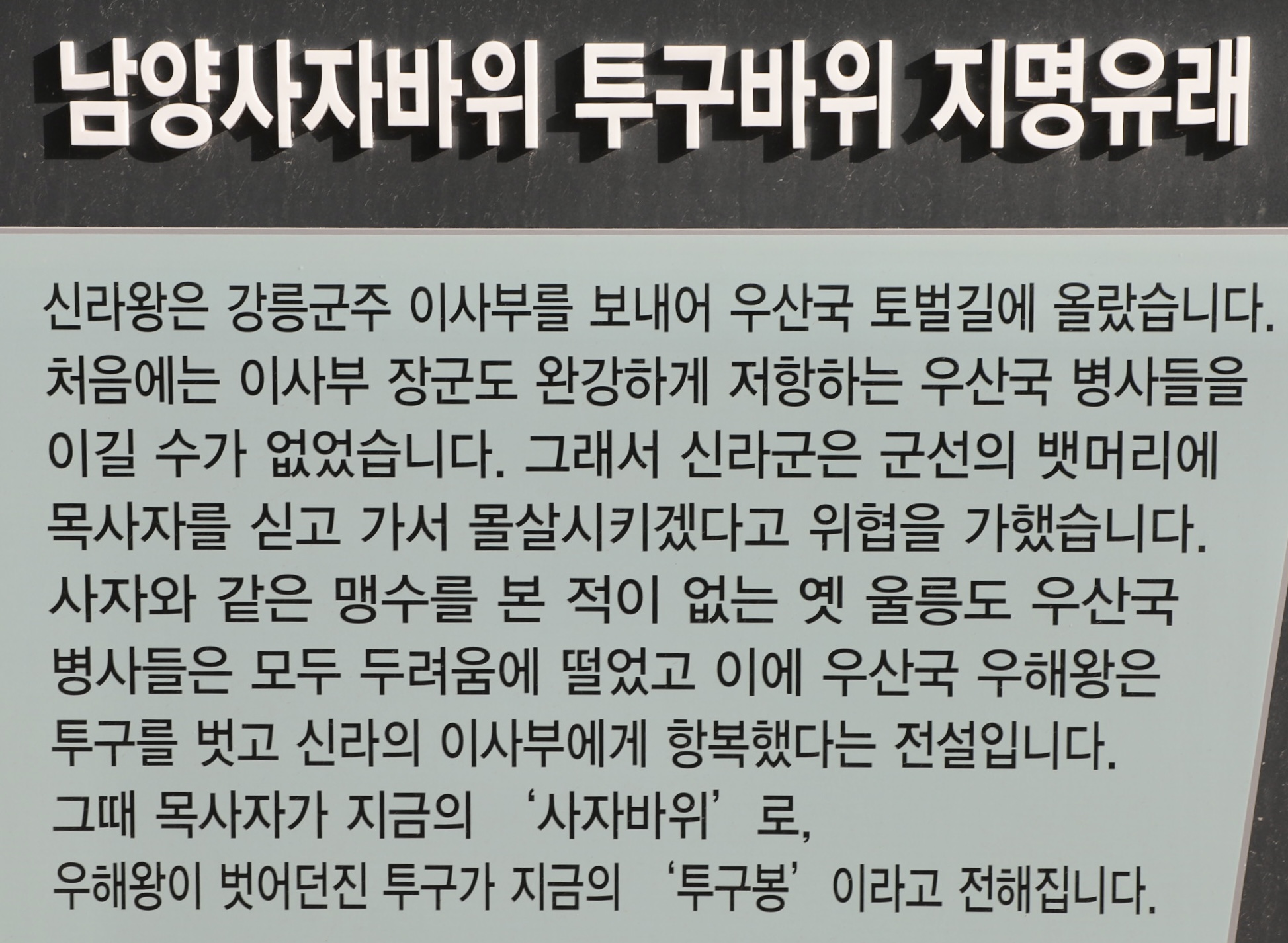 오전에 울릉도 농산물가공지원센터에서 강의를 감명 깊게 듣고 난 뒤 국수바위를 거쳐 남양항 주변을 탐방한다.