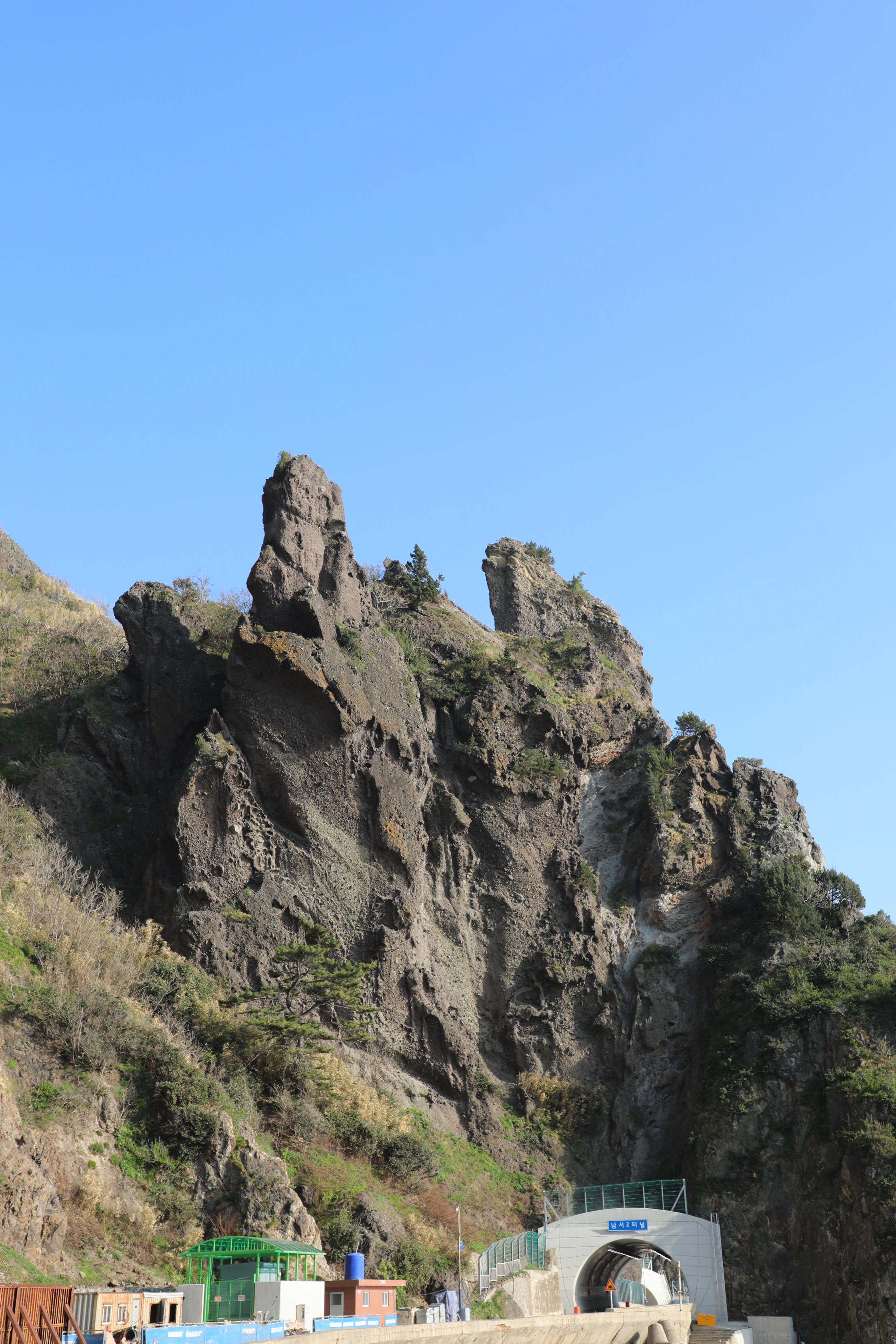 남서2터널 서쪽으로 넘어와 보면 남근바위와 마주 보는 바위가 뚜렷하게 보인다.