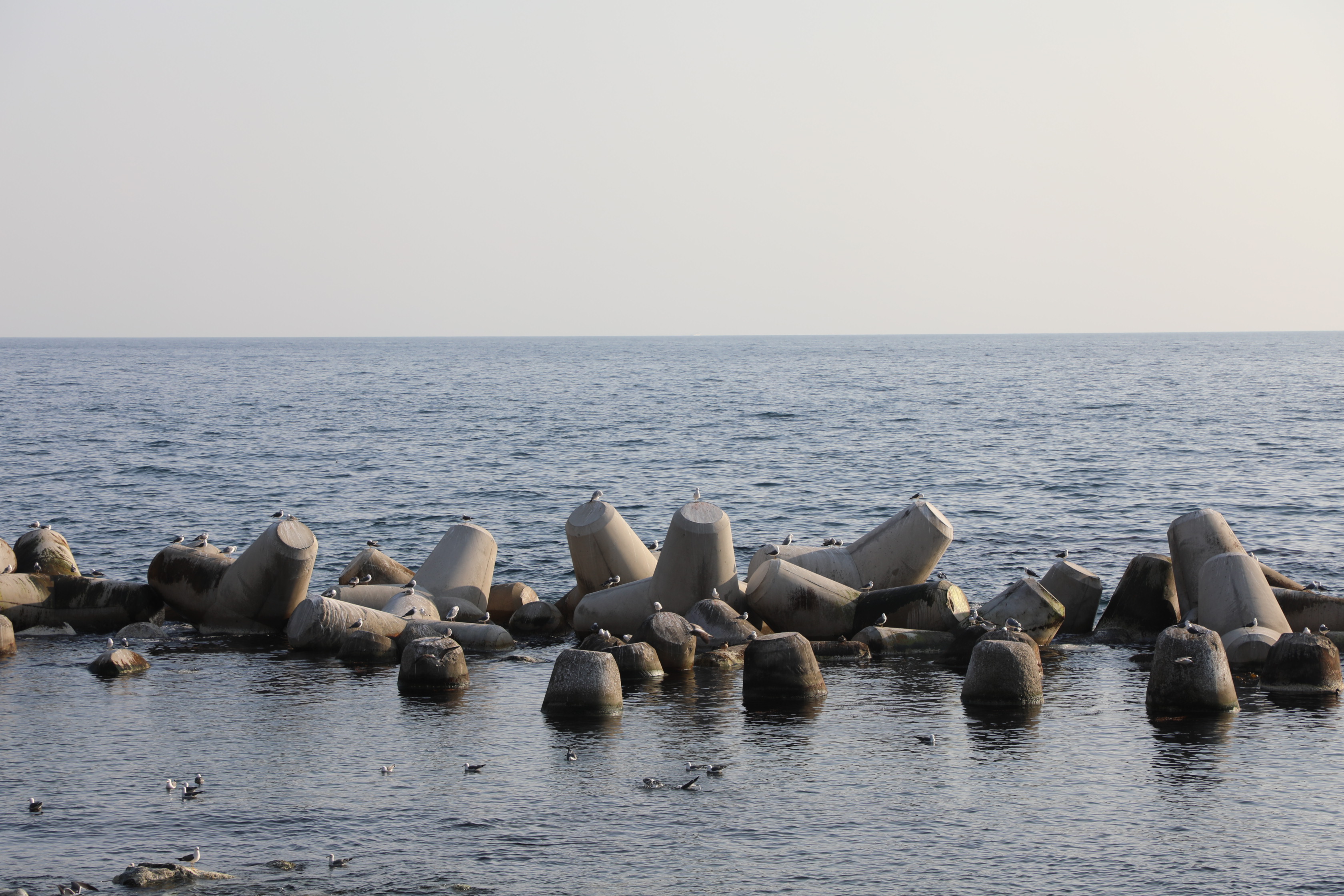 방파제로 사용되는 테트라포드는 갈매기들의 쉼터가 되었다.