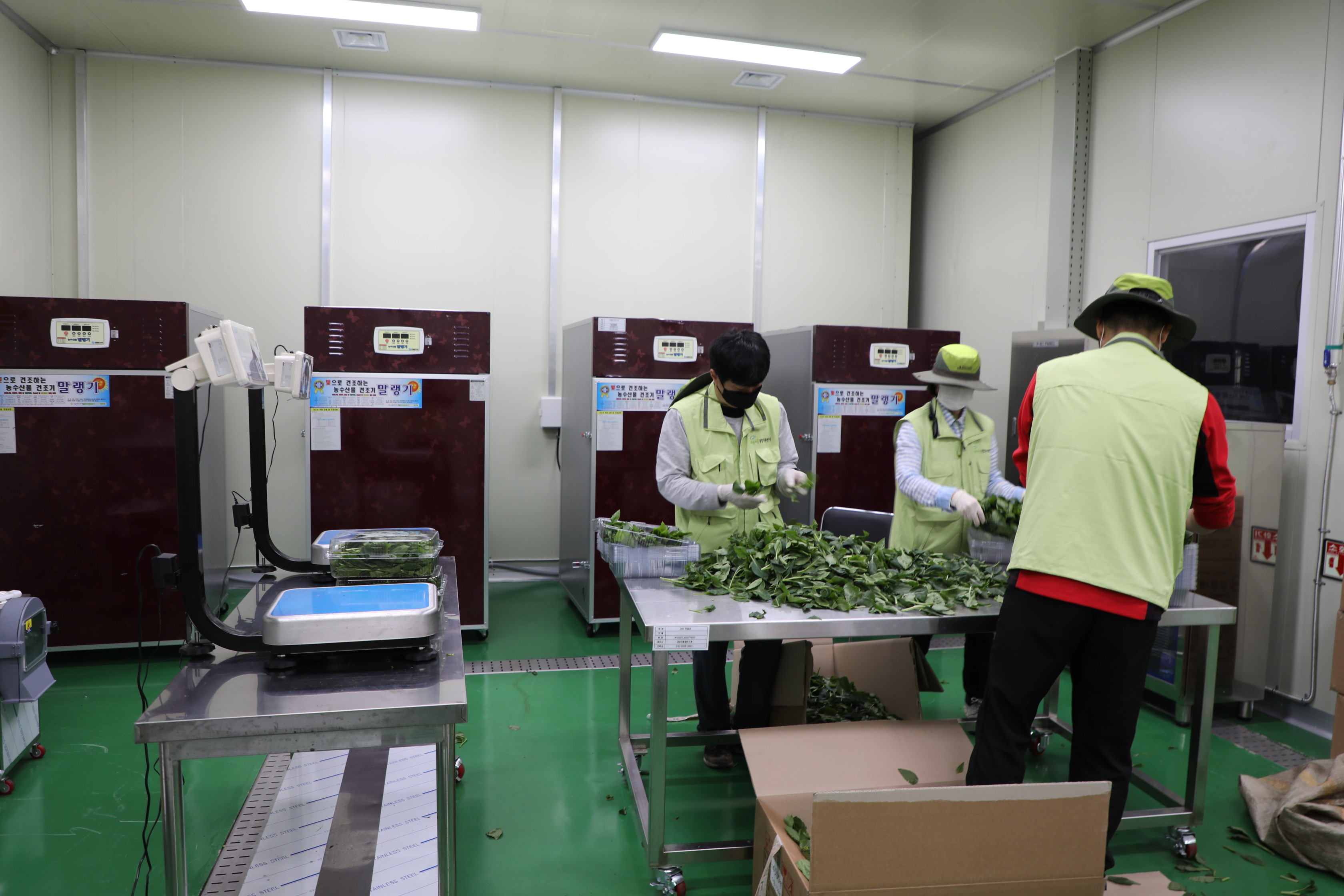 오늘은 이곳에서 농협으로 납품한 부지깽이를 선별하여 포장하는 작업을 하게 된다.