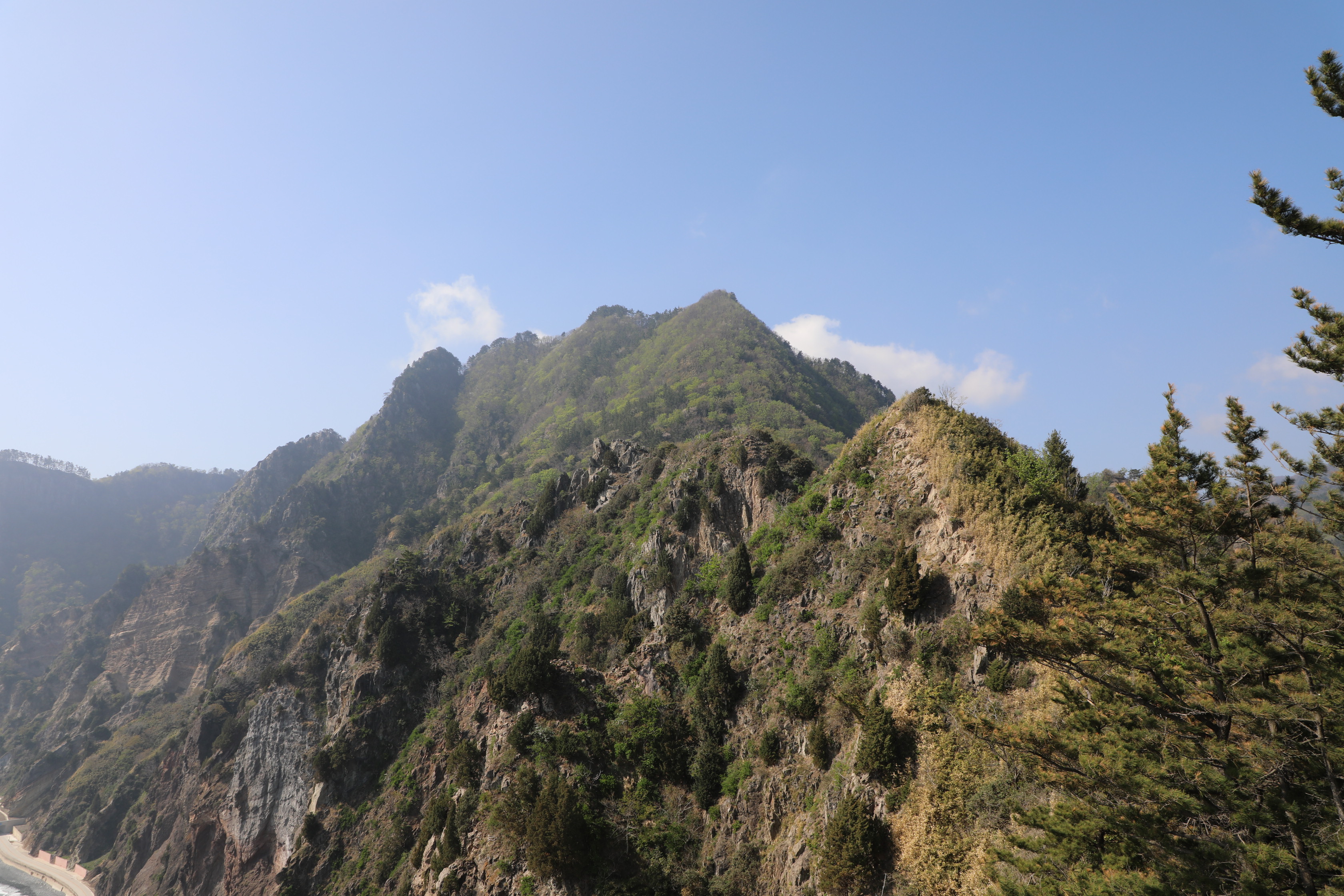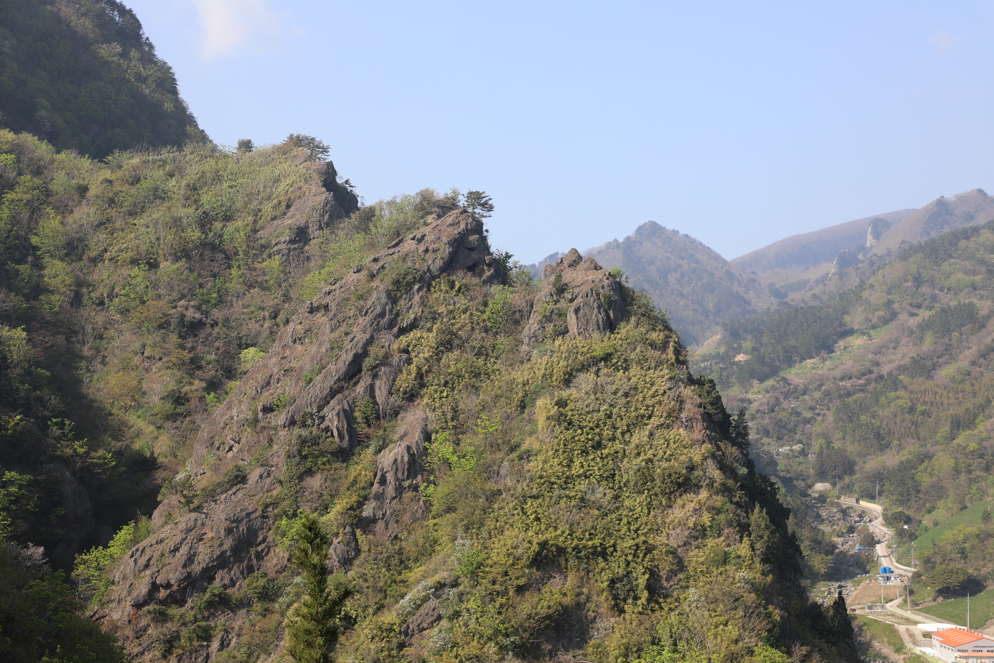 2022_39 2022.4.7 (목) 오후에 탐방 오전에 울릉군 농산물 가공센터에서 지역 산채나물에 대한 강의를 듣고 휴식시간에 밖으로 나왔다. 양 옆으로 벽처럼 막아선 산속에 자리한 농산물 가공센터는