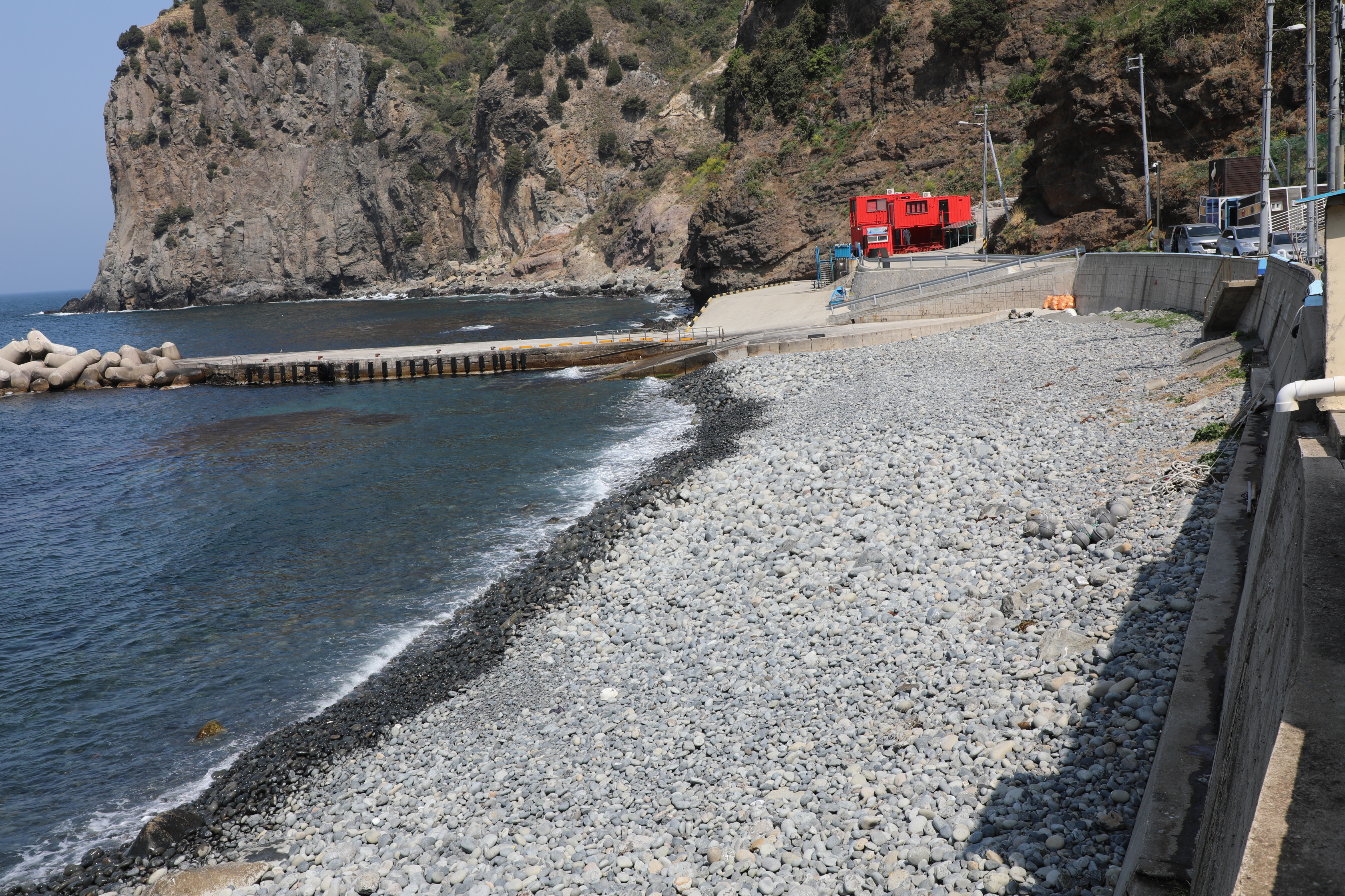 해안은 바위산으로 연결돼 터널을 뚫어도 길을 연결할 수 없기에 정류장에서 한참 내려가야 한다.