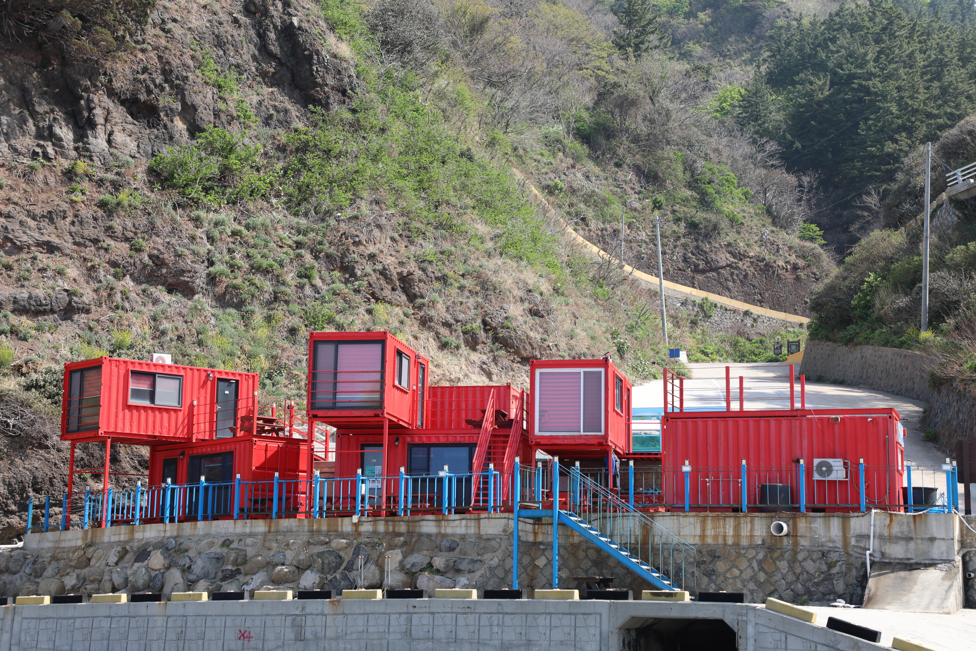 푸른 바다와 대비되는 붉은색이 잘 어울린다.