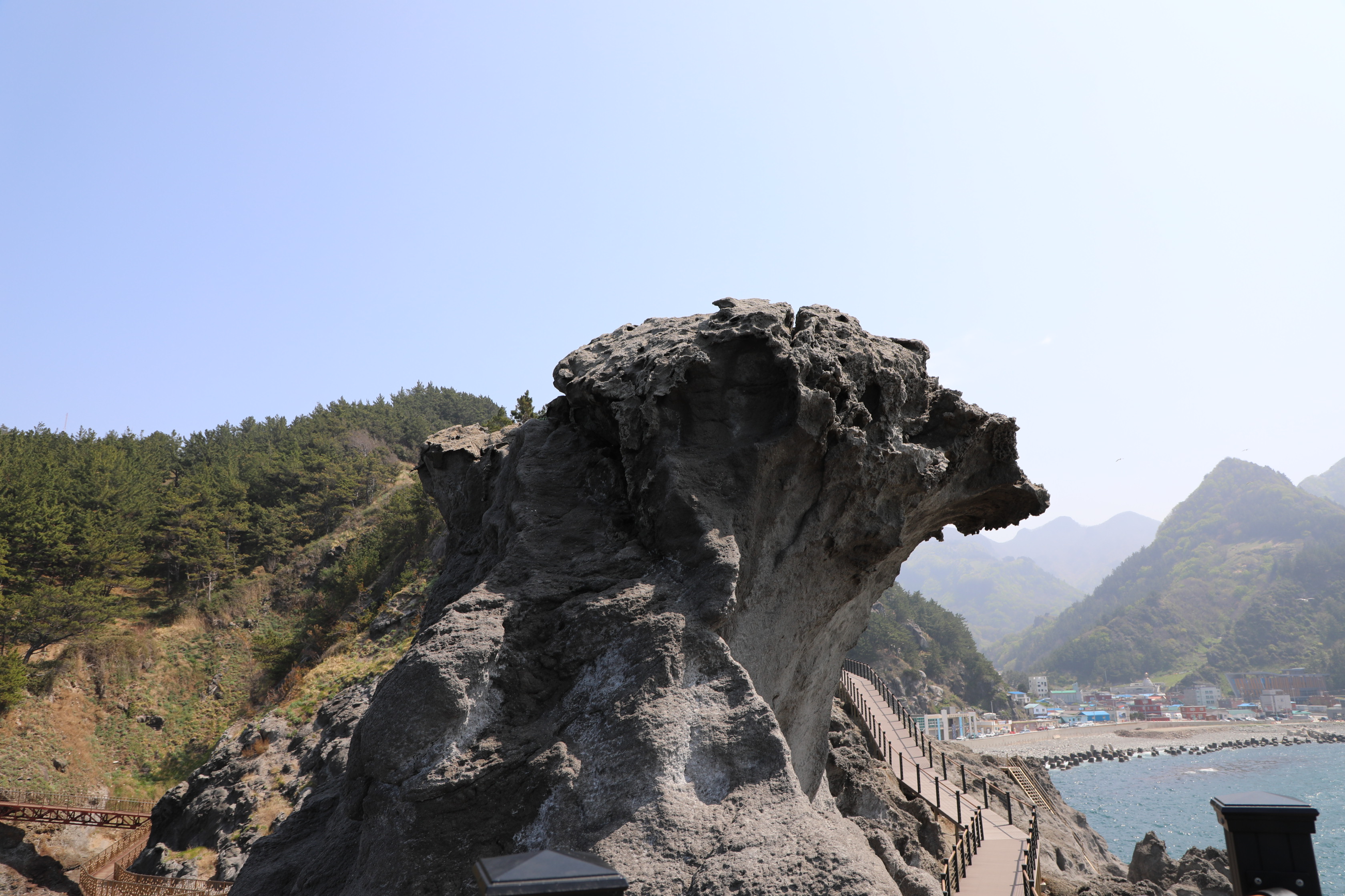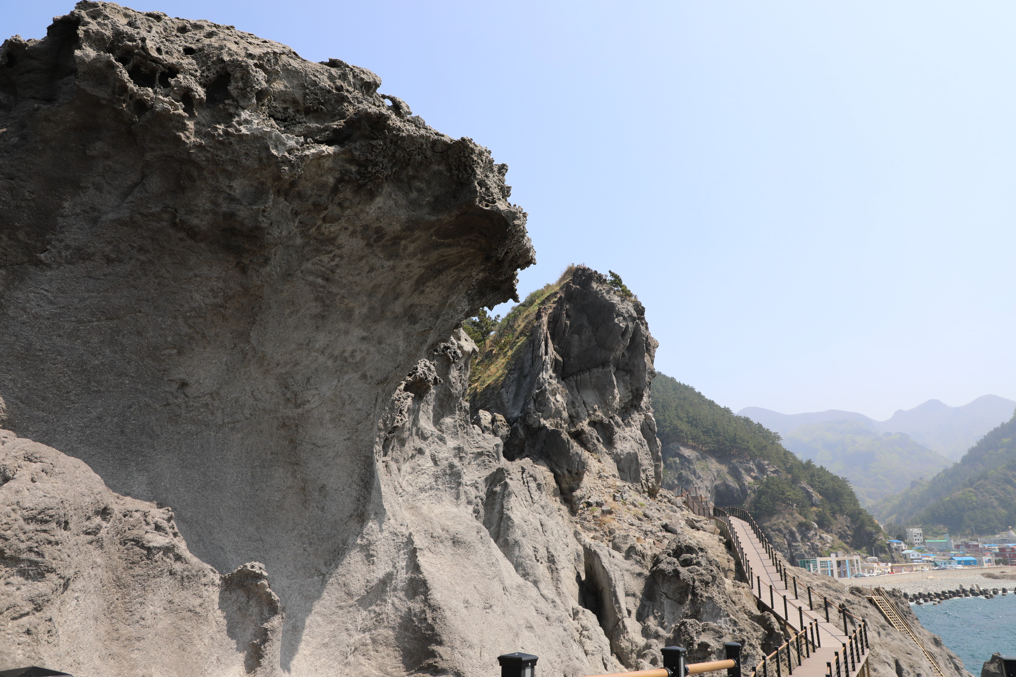 해안산책로에 이렇게 우뚝 솟아 있는 바위로 인해 밋밋할 수 있는 이곳에 포인트를 주고 있다.