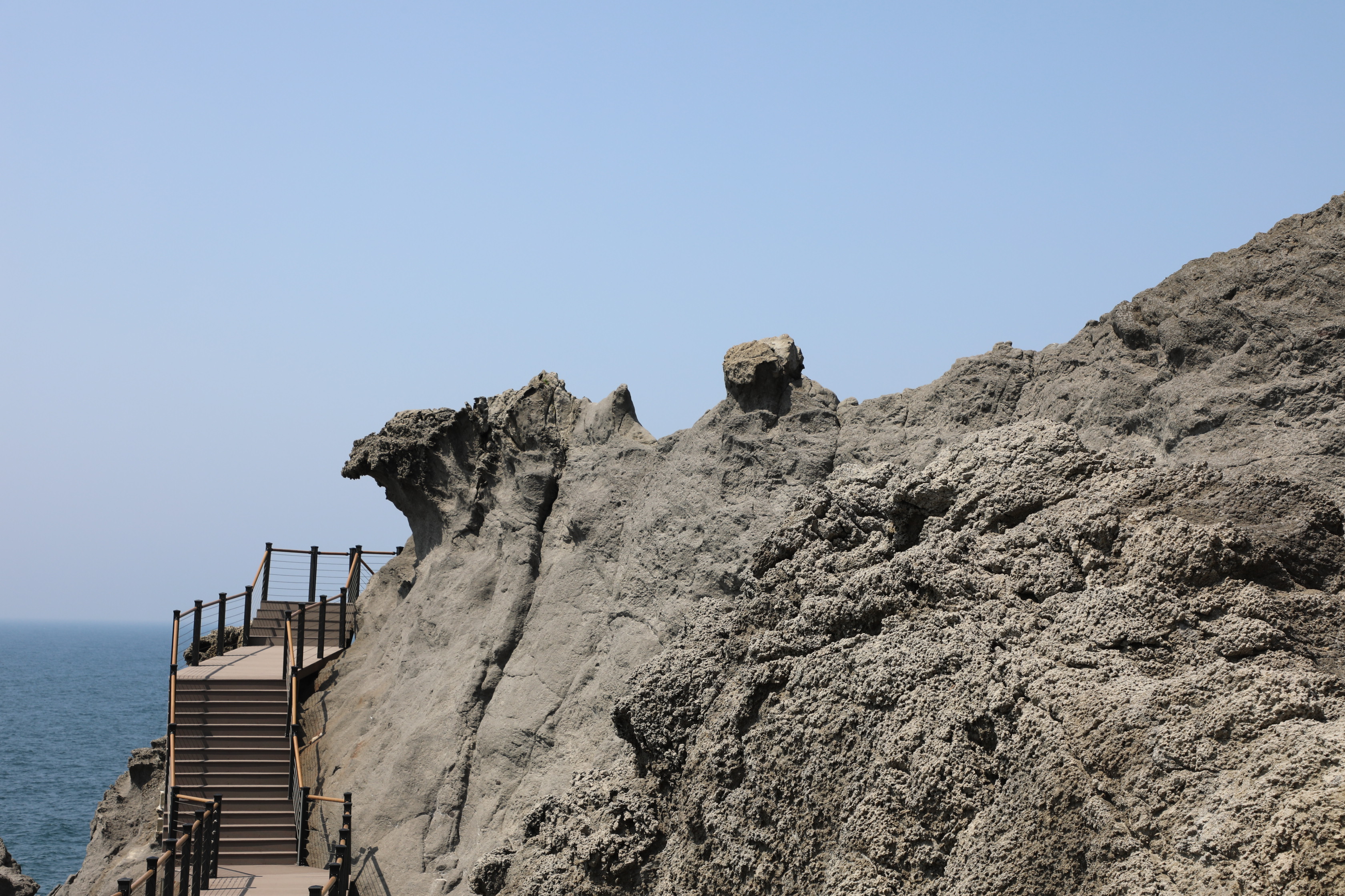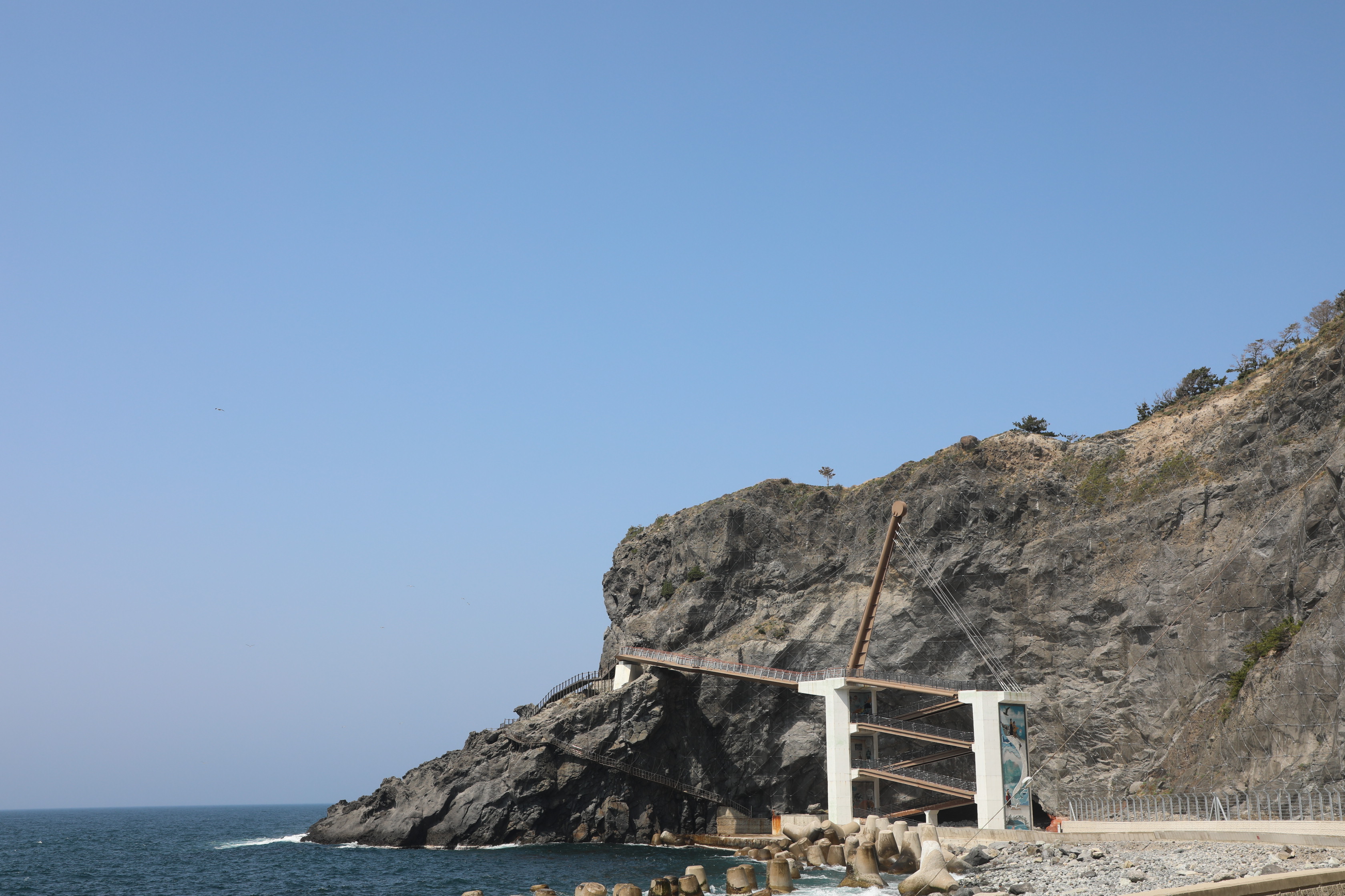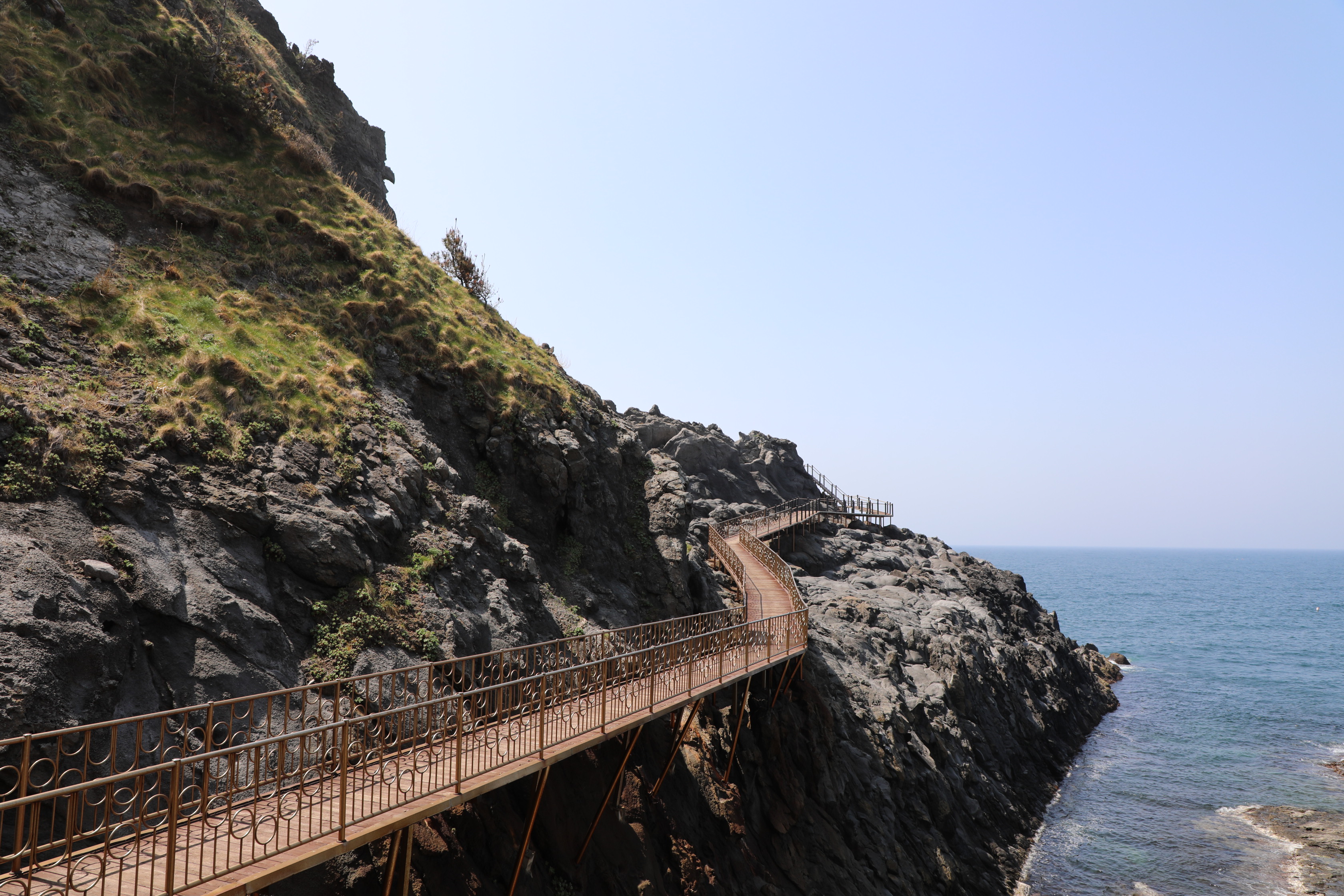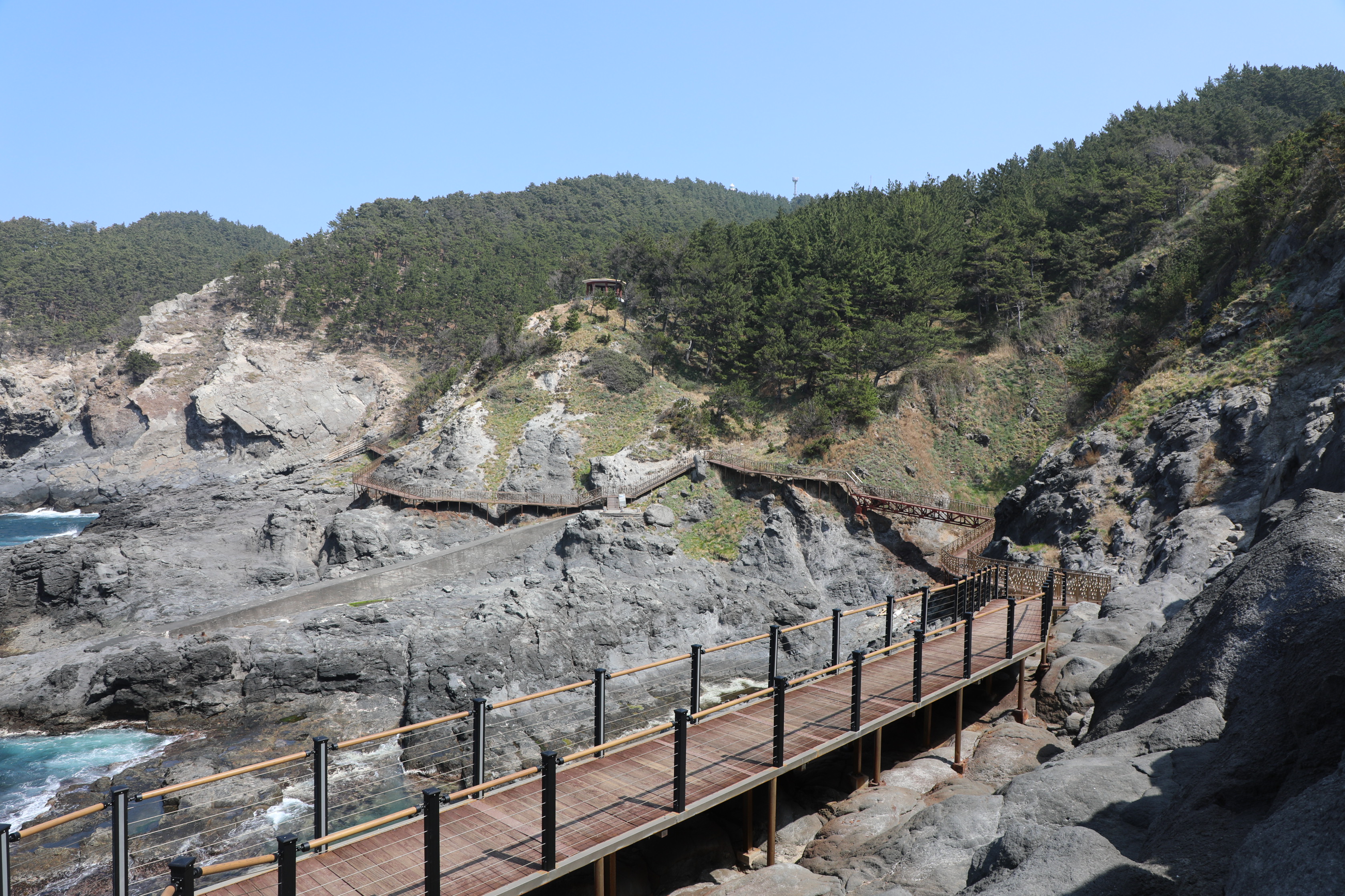침식 해안에 노약자도 다니기 쉽게 나무 데크로 길을 내 이동이 편리하다.