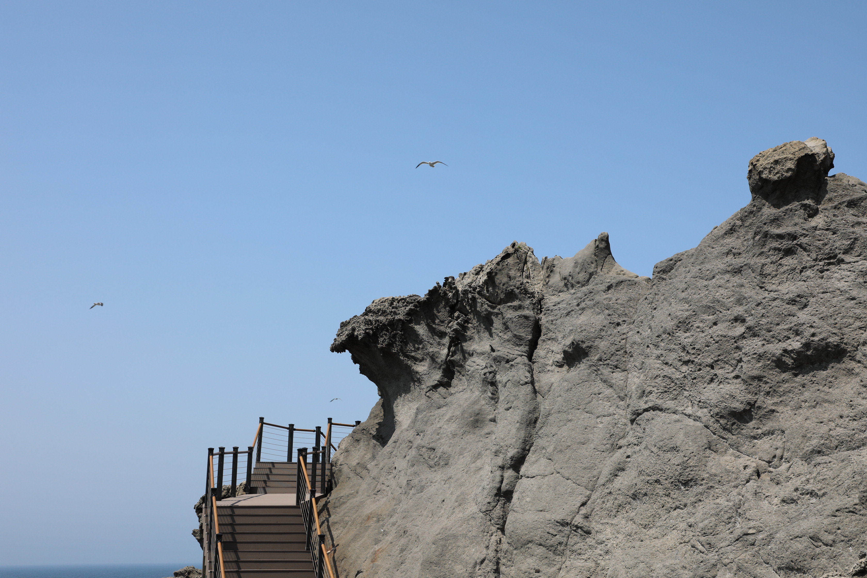 독수리 바위 위로 겁 없이 갈매기가 날고 있다.