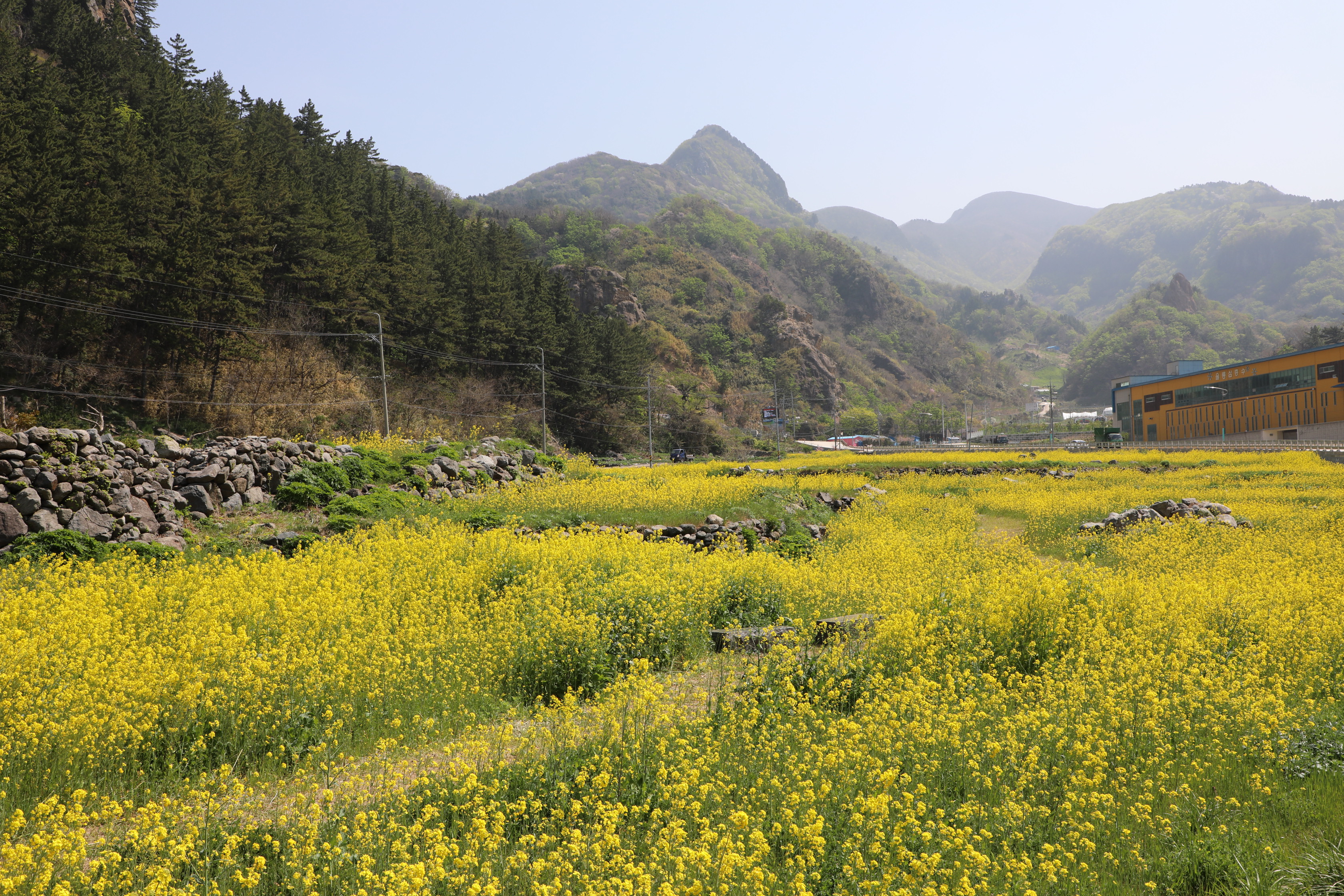 태하항으로 들어서는 길에 유채꽃밭이 제법 넓게 포진해 있다.