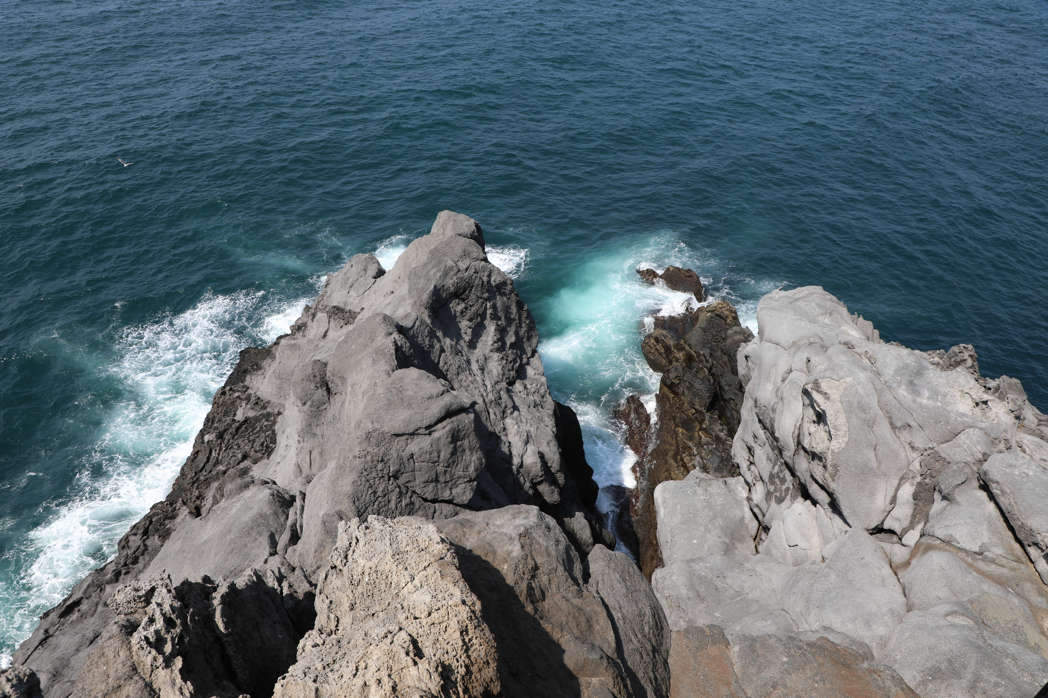 맑은 바다가 바위와 부딪쳐 하얀 포말을 그리고 있다.