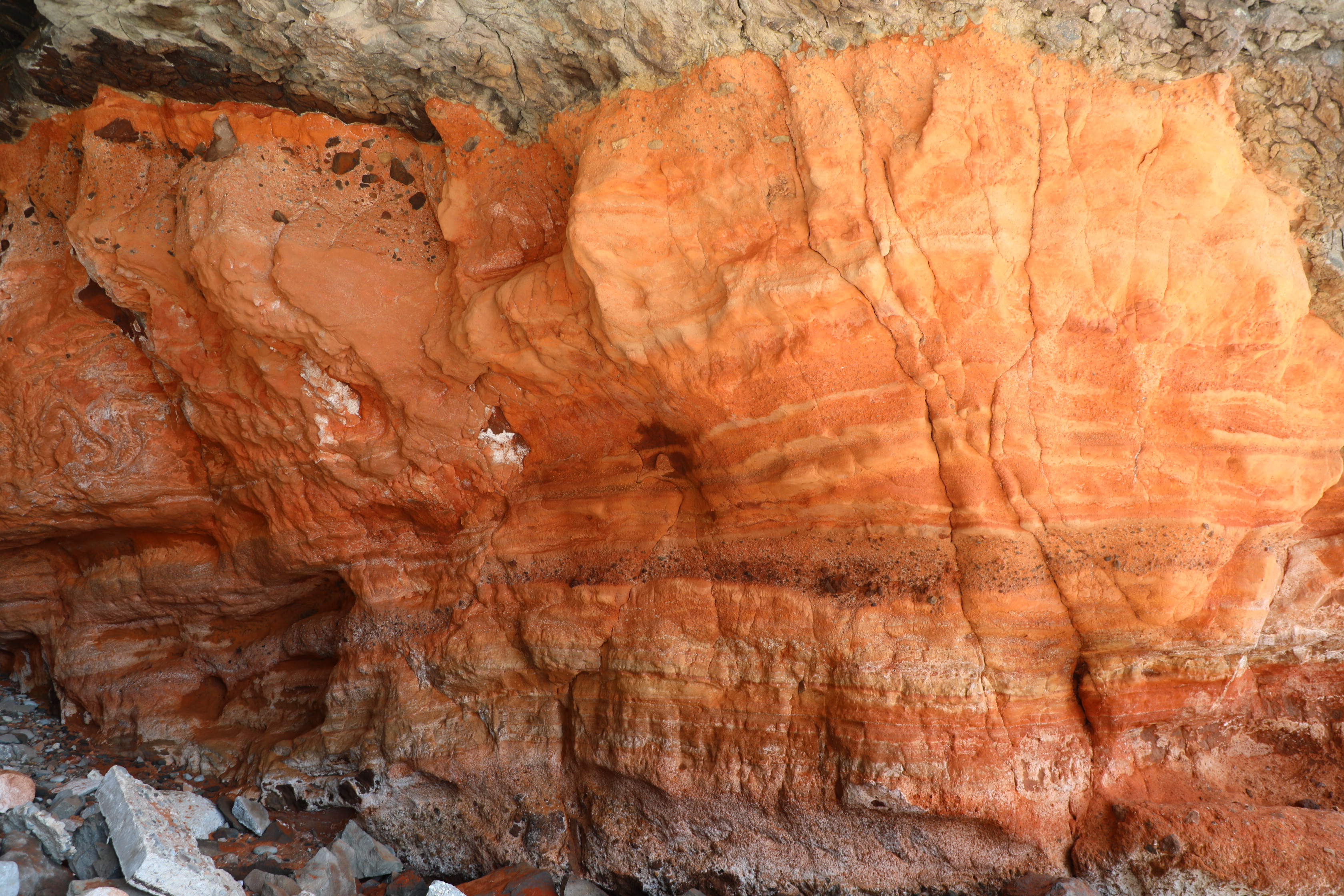서로 다른 용암들 사이의 접촉부는 풍화나 침식에 약하므로 파도에 의해 빨리 침식된다.