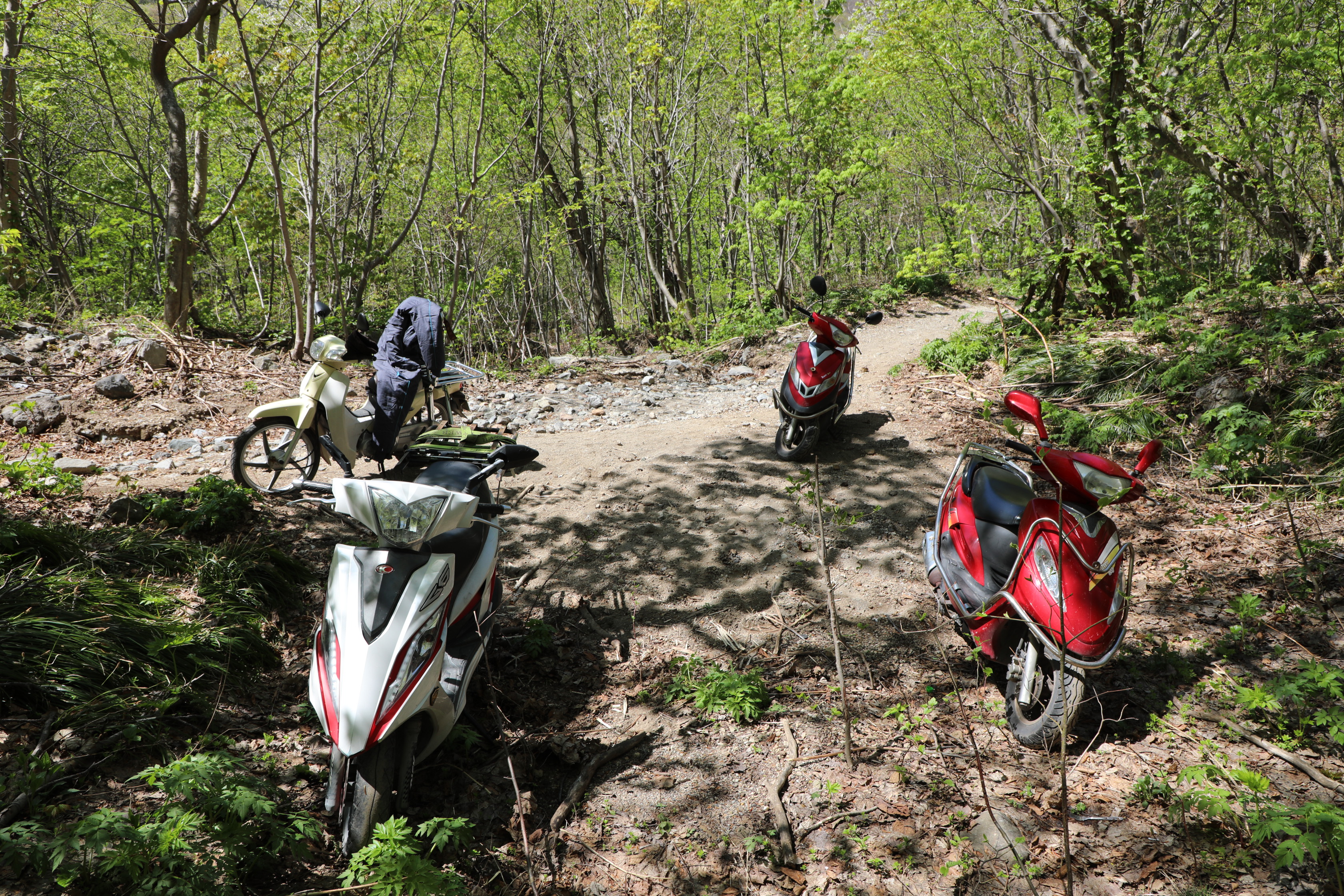 그분들이 명이 배낭을 싣고 가기 위해 세운 오토바이다.