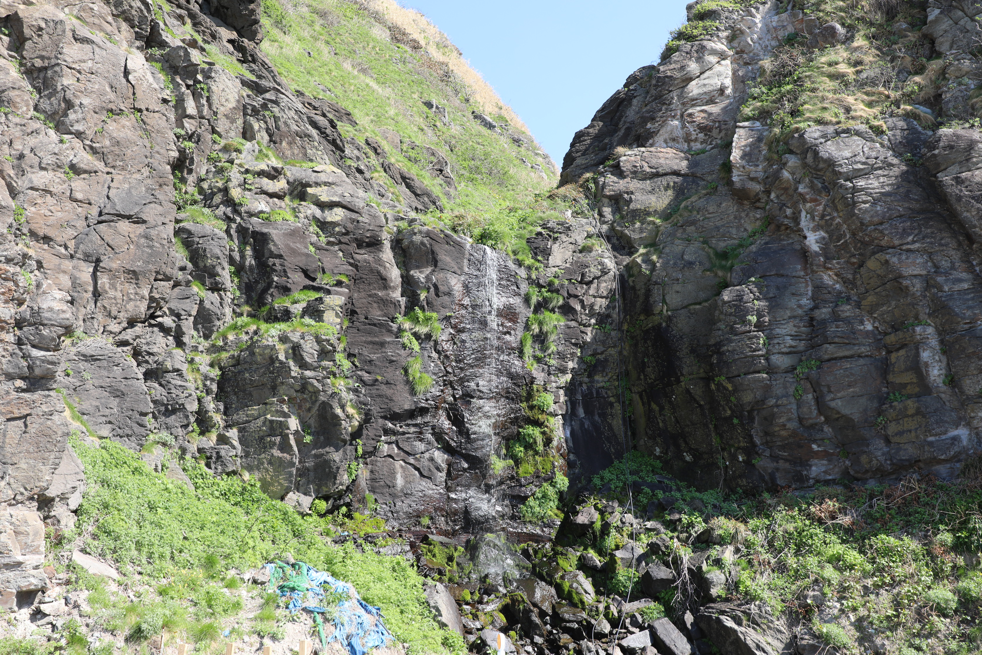 낮다고 생각한 산에서 제법 물이 흐르는지 소 오줌줄기만 한 실 폭포가 흐른다.