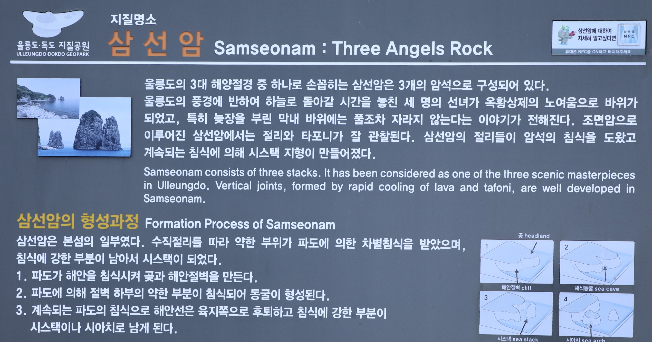 삼선암은 울릉도의 3대 해양 절경 중 최고로 친다.