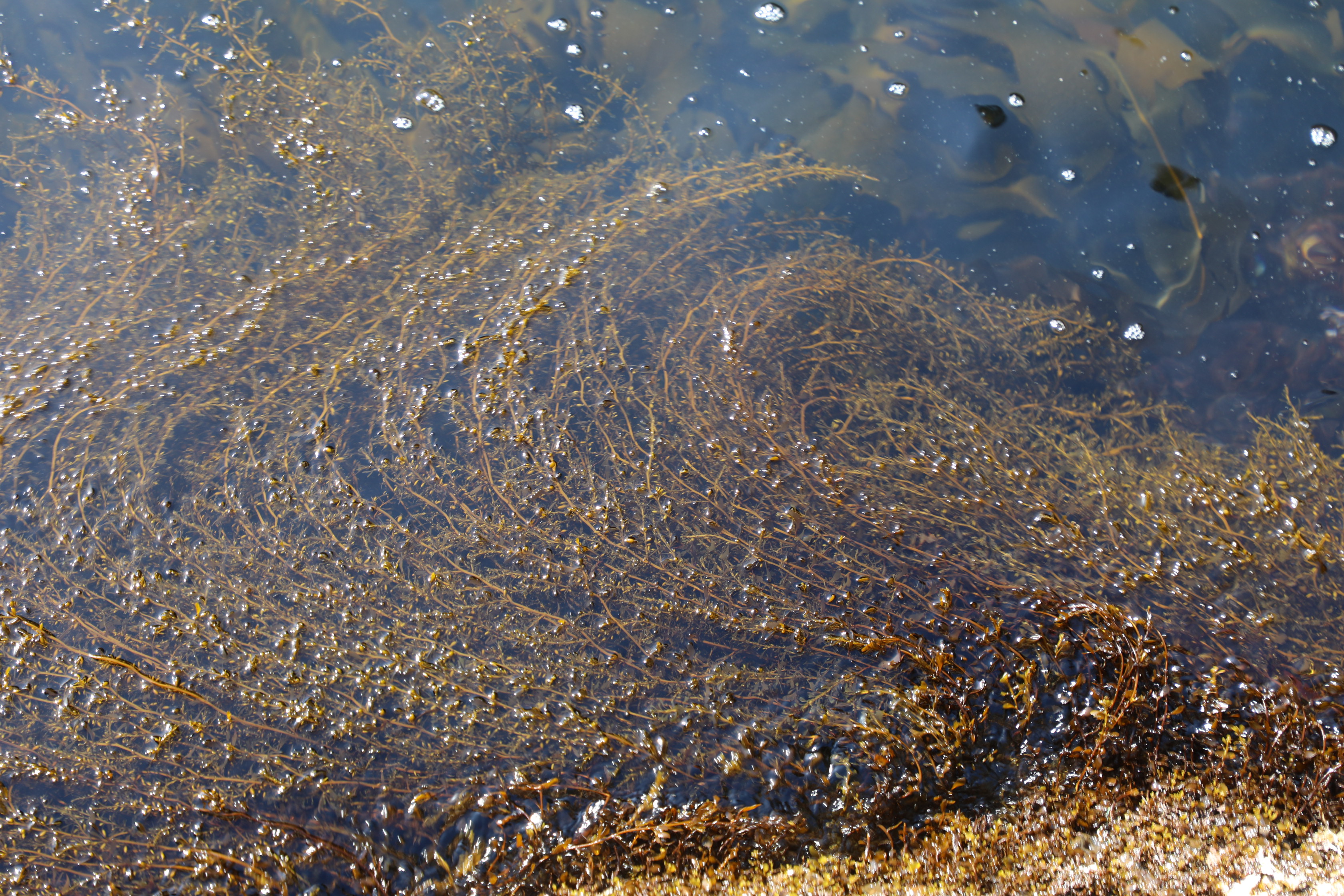 모자반이 바닷물결 따라 이리저리 움직인다.