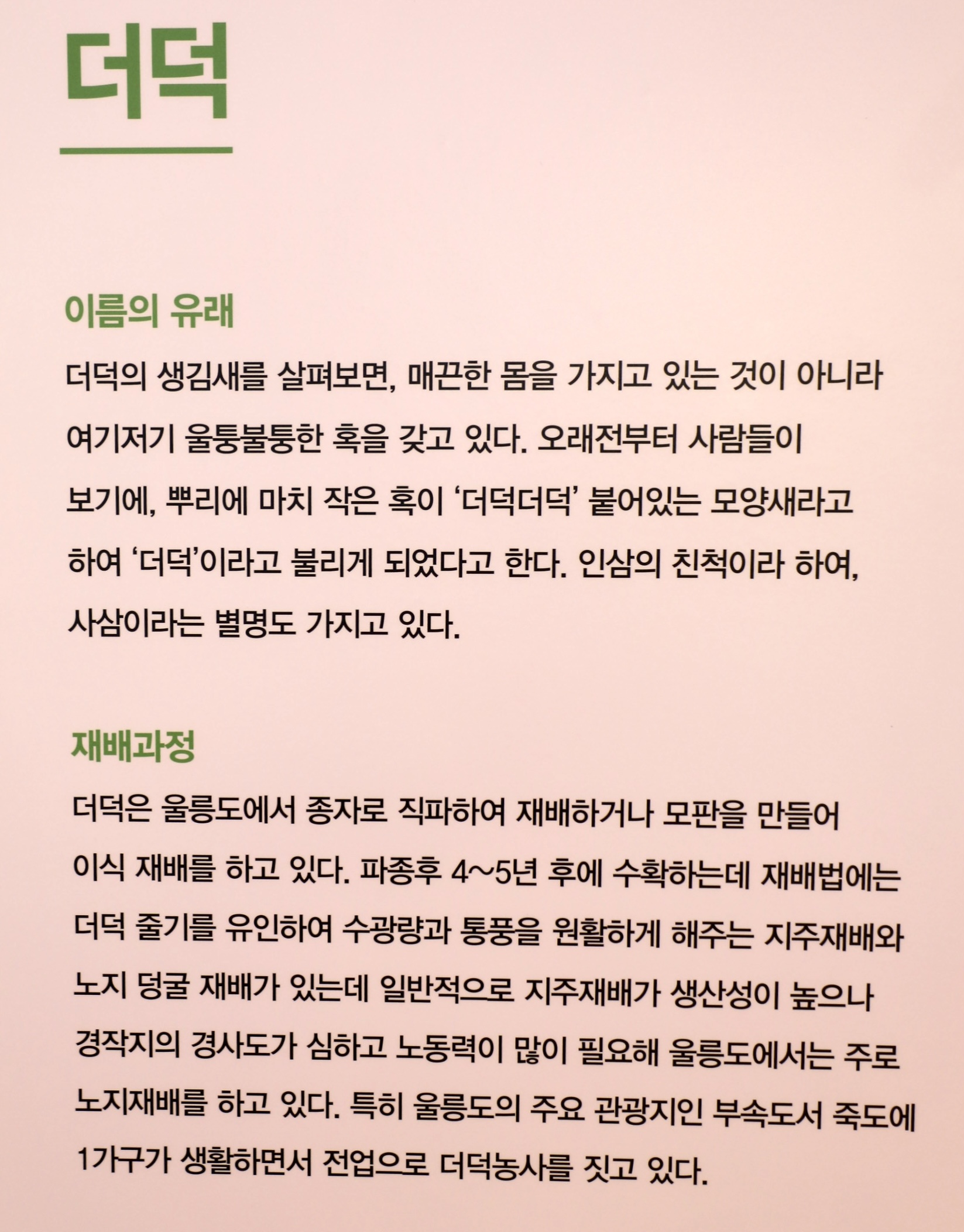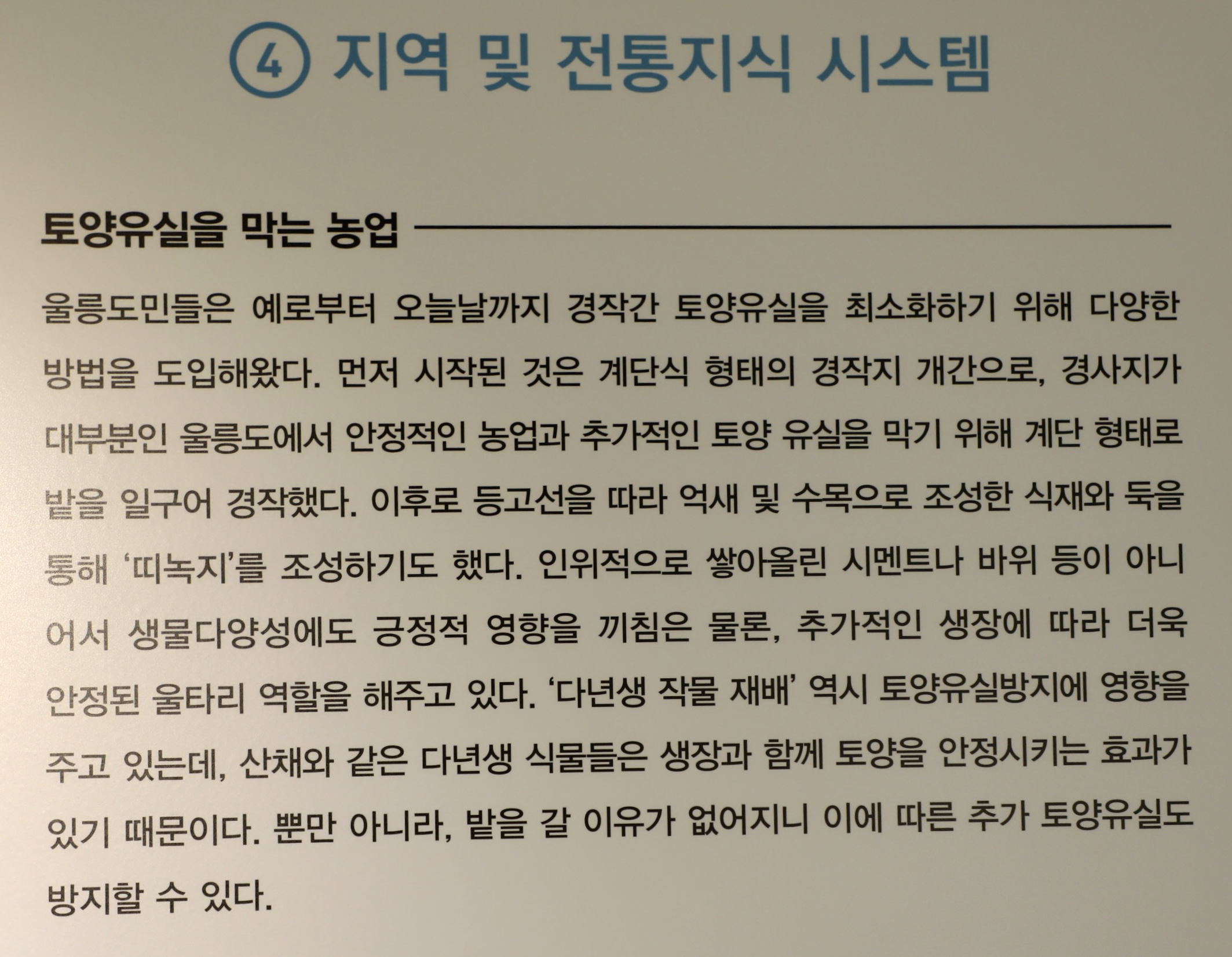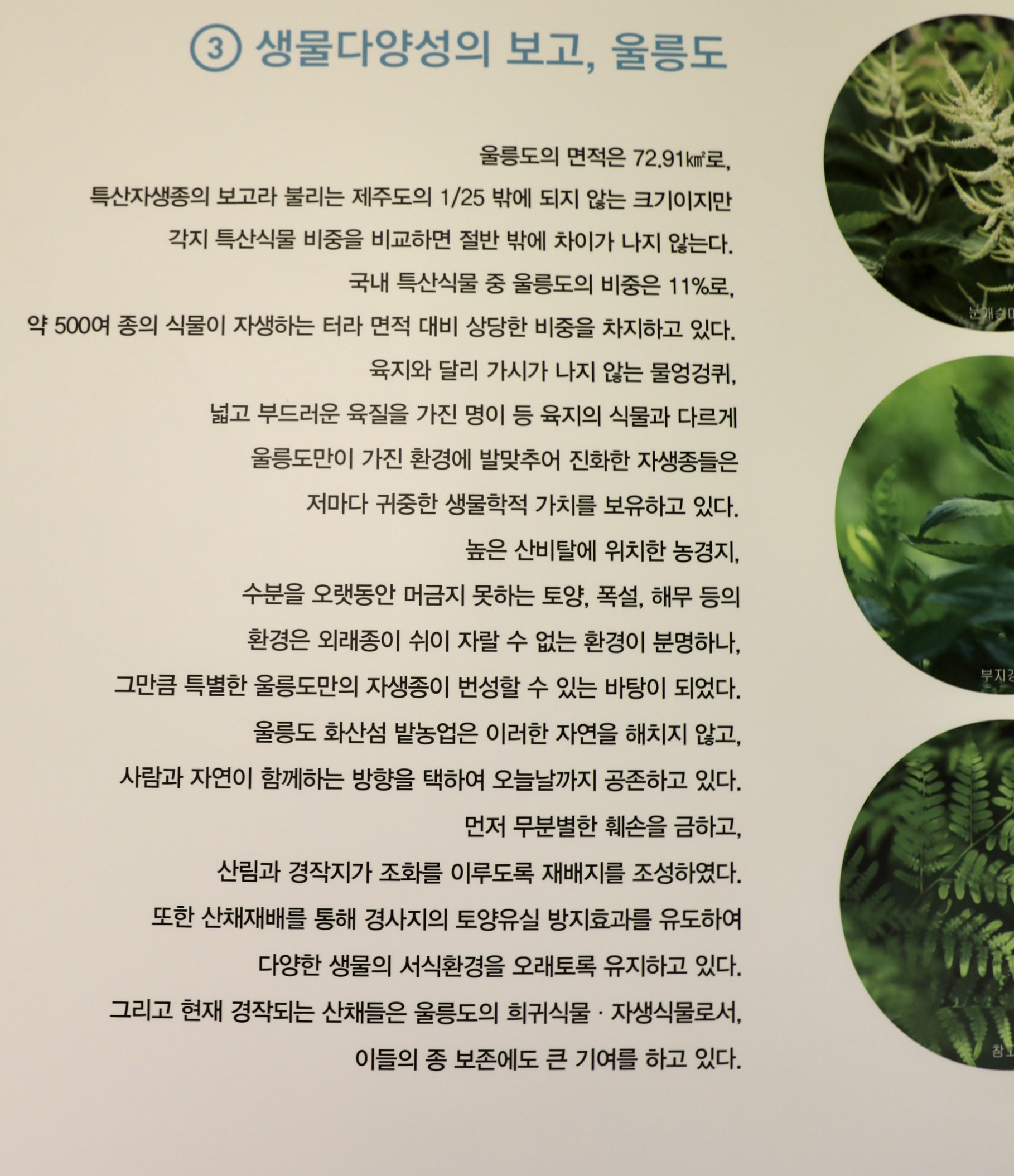 이 전시관을 둘러보는 것만으로도 울릉도 농업에 대한 이해를 높일 수 있다.