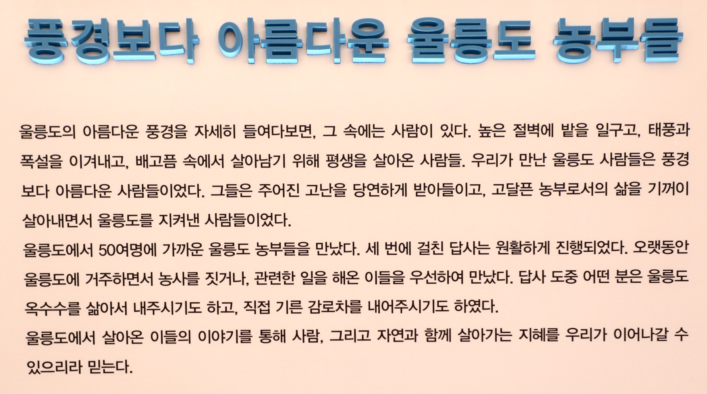 전문가의 손을 거친 사진과 설명으로 울릉도 농업을 보다 자세히 알게 되었다.